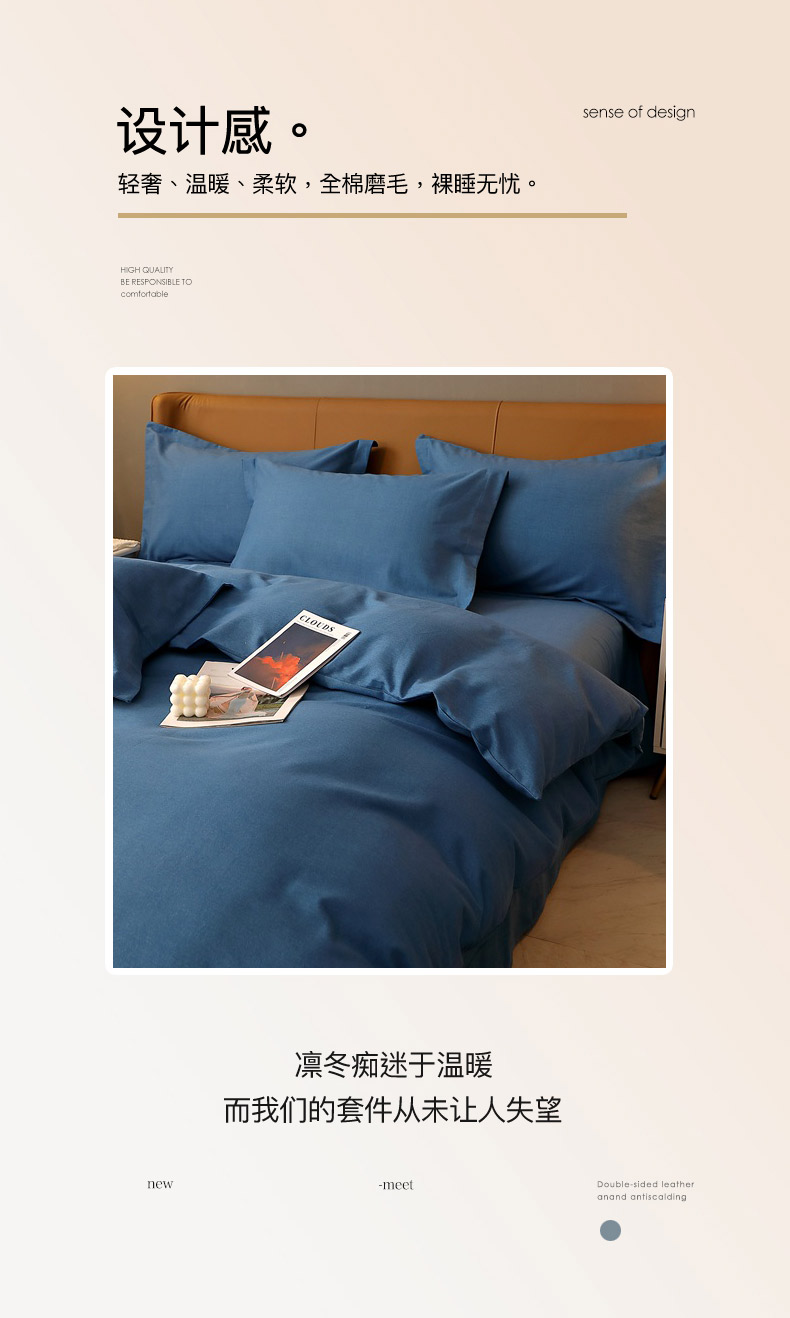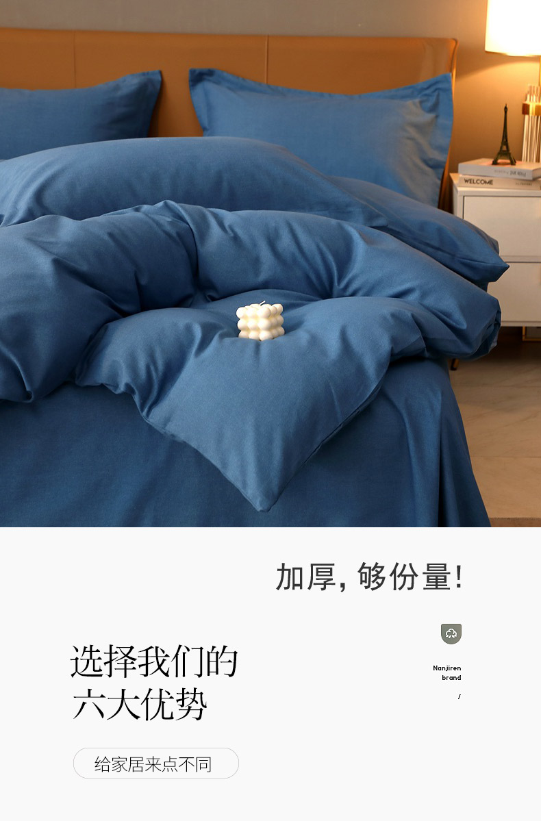 商品名称:(总)2025新款加厚纯棉喷气全棉纯色生态磨毛多规格四件套·素色保暖活性斜纹床单款床笠款学生宿舍三件套