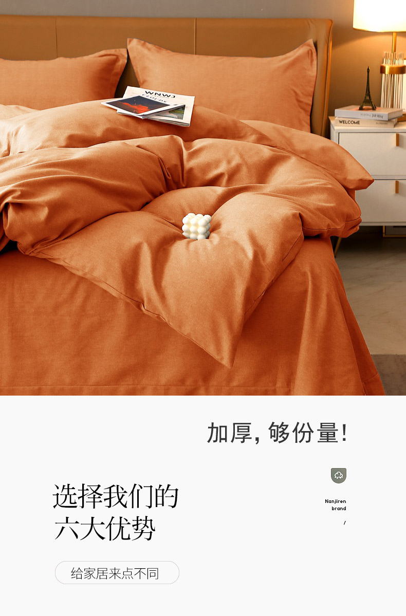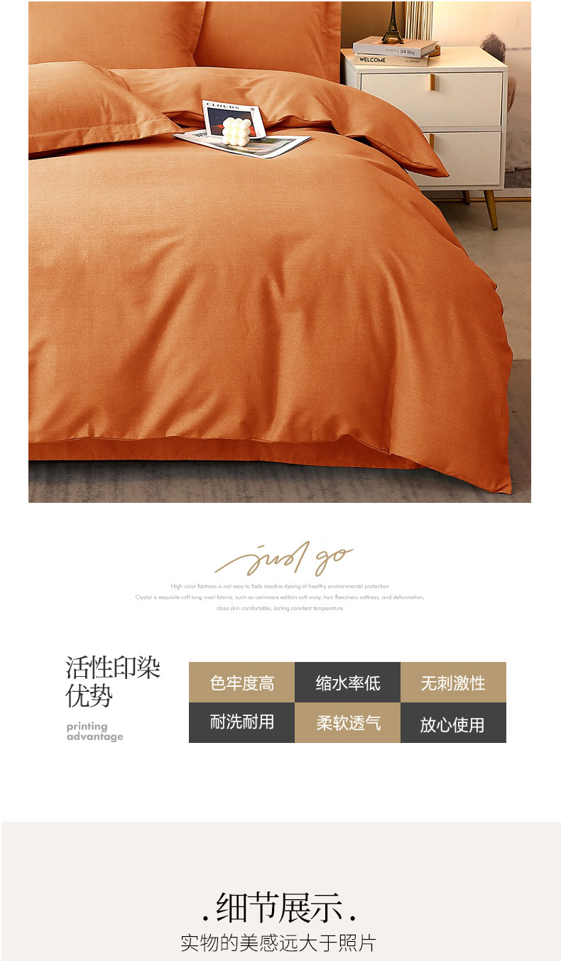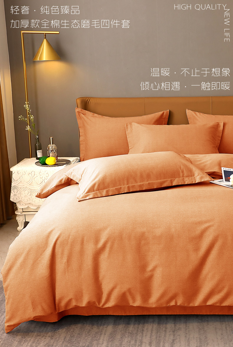 当前位置: 91家纺网 > 商品网购 > 床品套件 > 四件套 > 普通磨毛四件套 > 晶缦家纺 2024新款加厚纯棉喷气全棉纯色生态磨毛多规格四件套 纯依-时尚桔