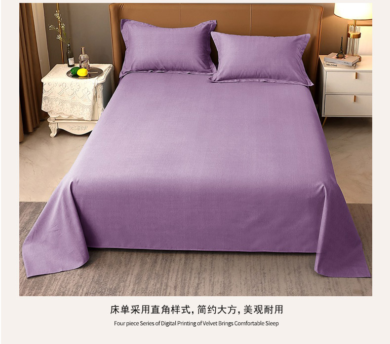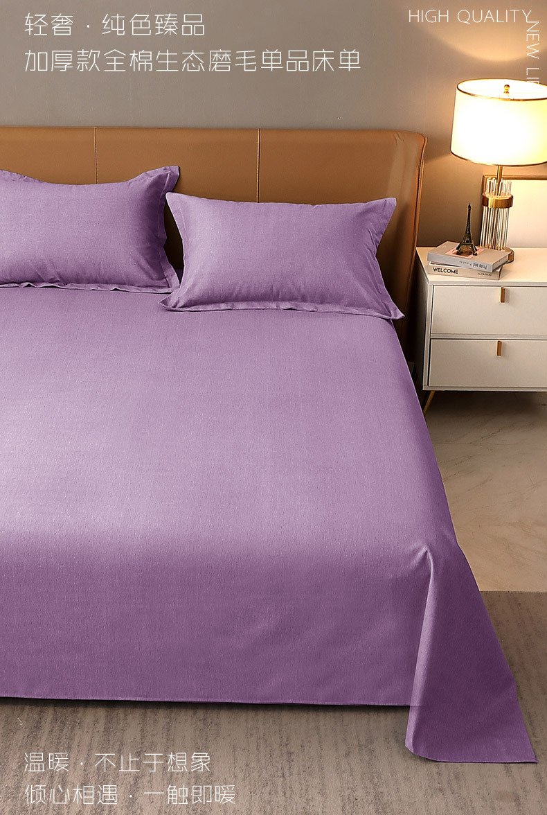 晶缦家纺 2024新款加厚纯棉喷气全棉纯色生态磨毛多规格单品床单 纯依-丁香紫