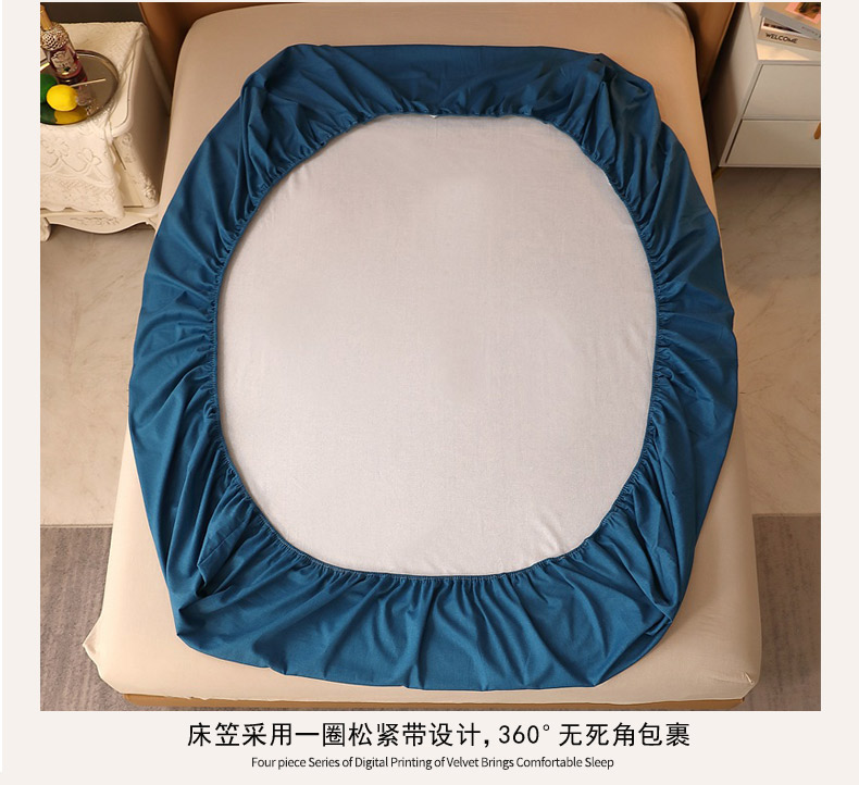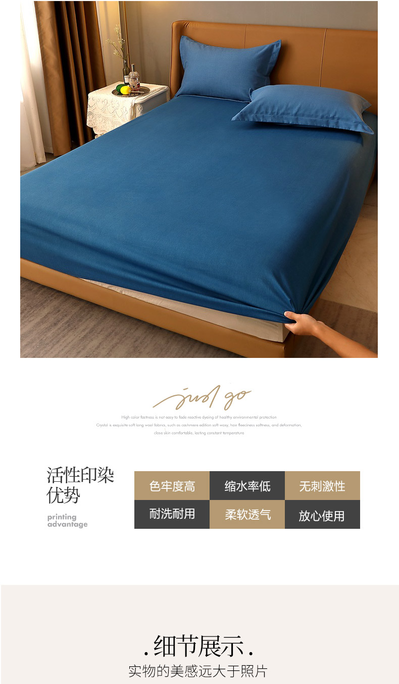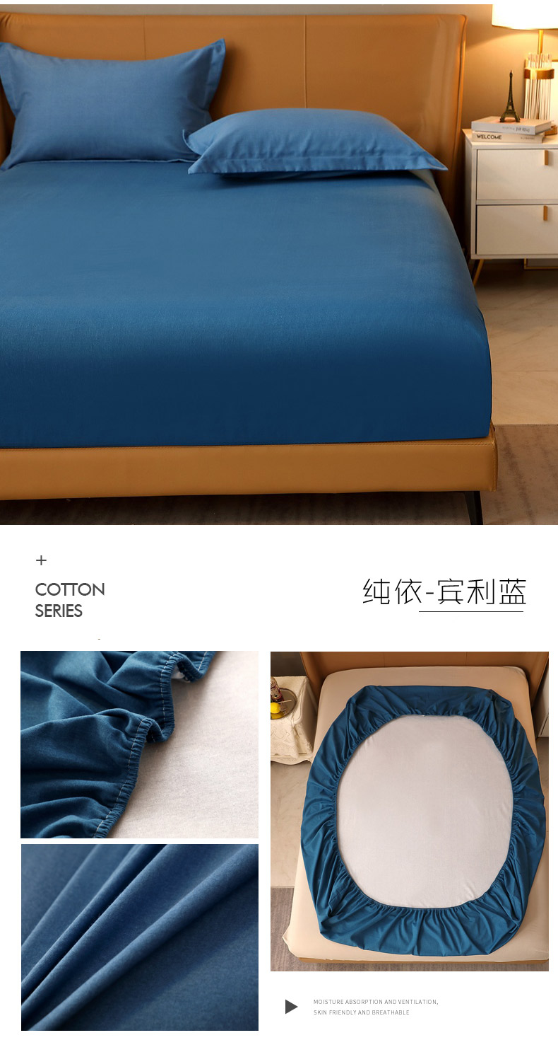 商品名称:晶缦家纺 2024新款加厚纯棉喷气全棉纯色生态磨毛多规格单品床笠 纯依-宾利蓝