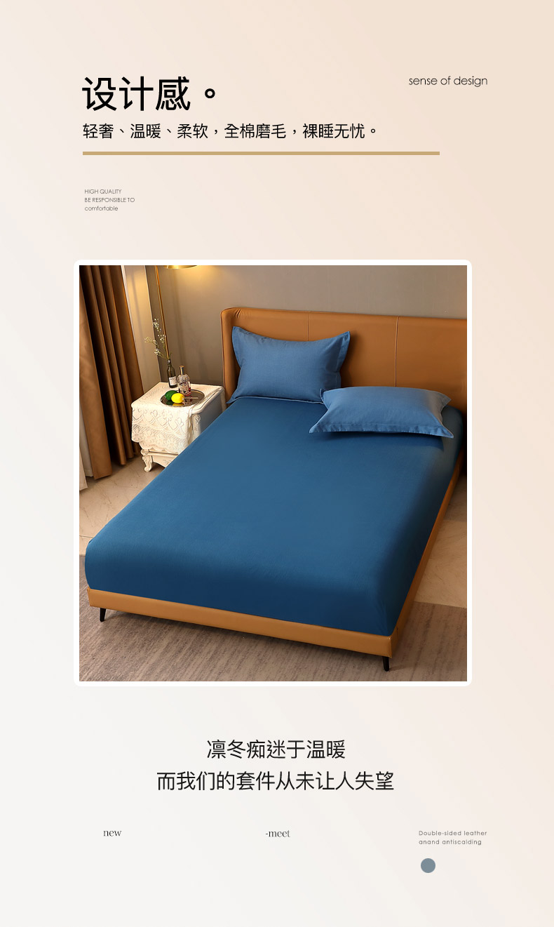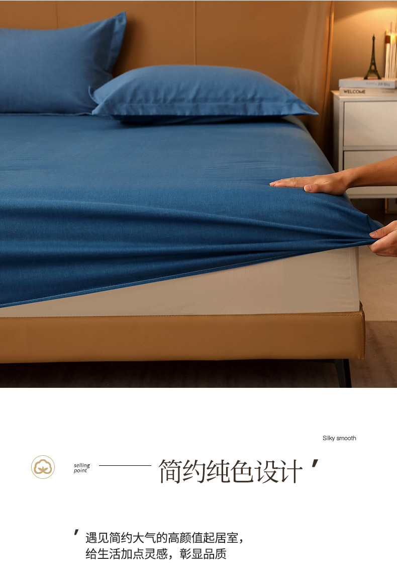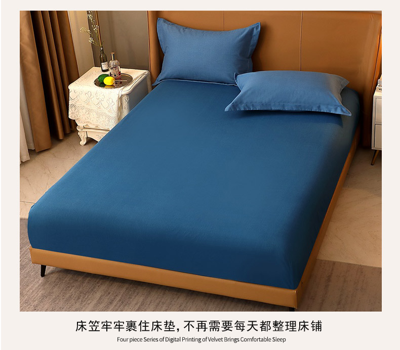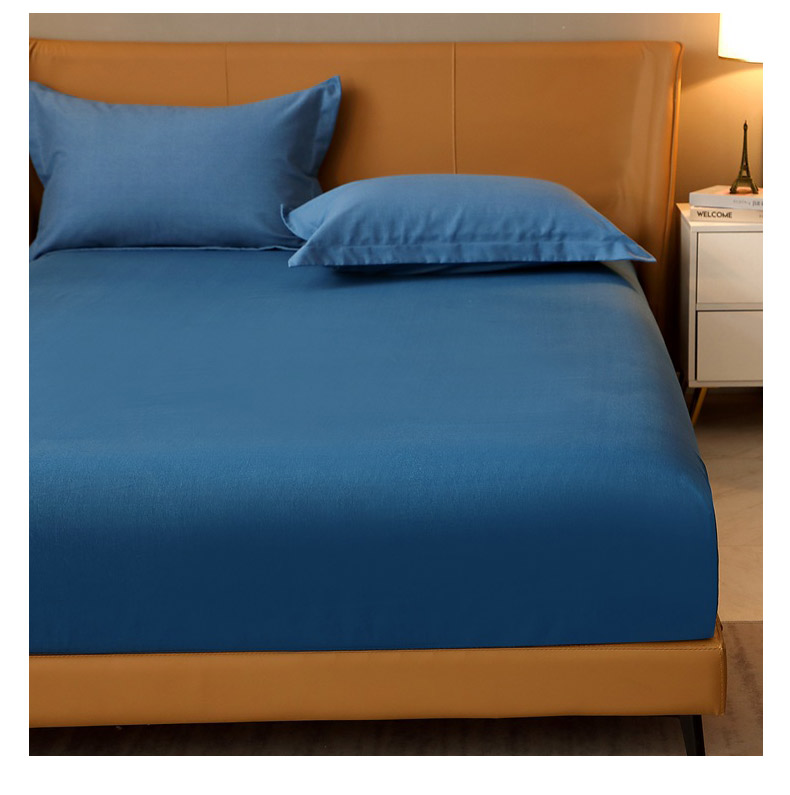 晶缦家纺 2024新款加厚纯棉喷气全棉纯色生态磨毛多规格单品床笠 纯依-宾利蓝