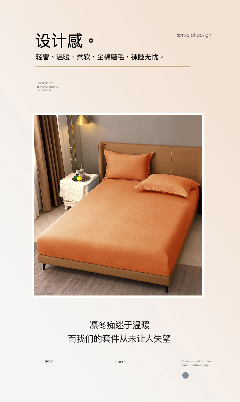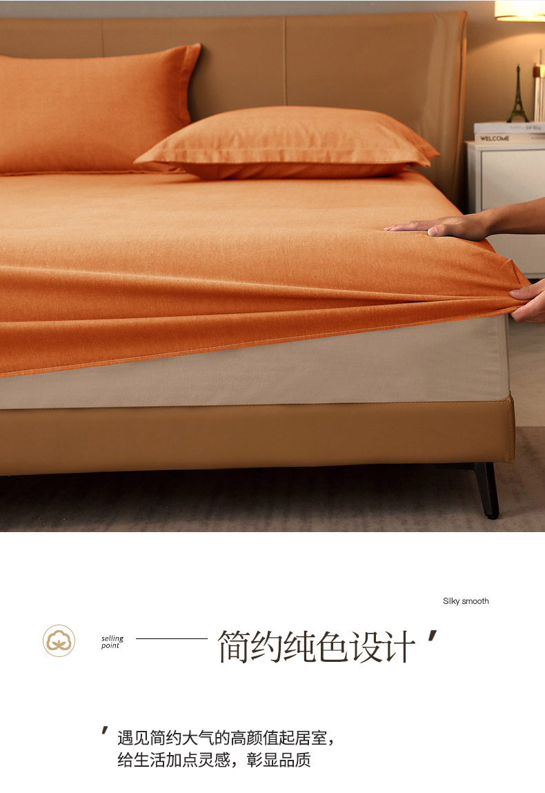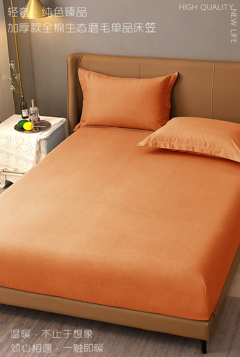 晶缦家纺 2024新款加厚纯棉喷气全棉纯色生态磨毛多规格单品床笠 纯依-时尚桔