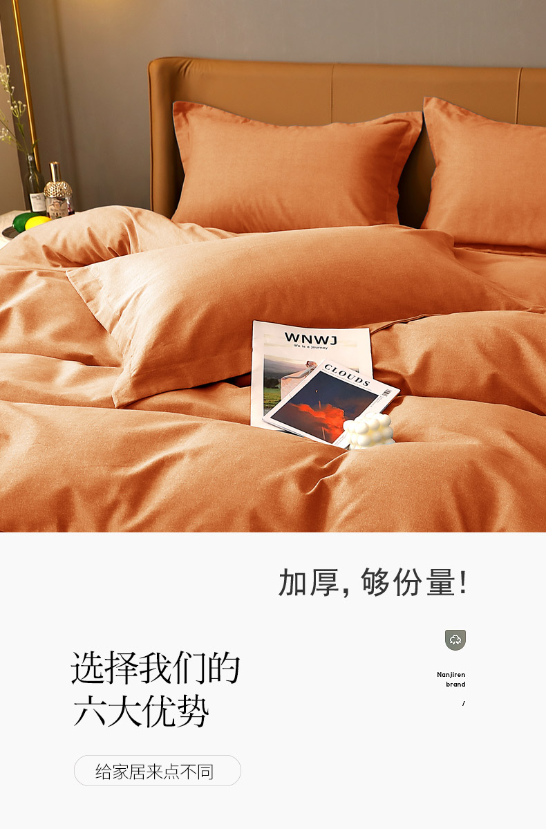 商品名称:晶缦家纺 2024新款加厚纯棉喷气全棉纯色生态磨毛多规格单品床笠 纯依-时尚桔