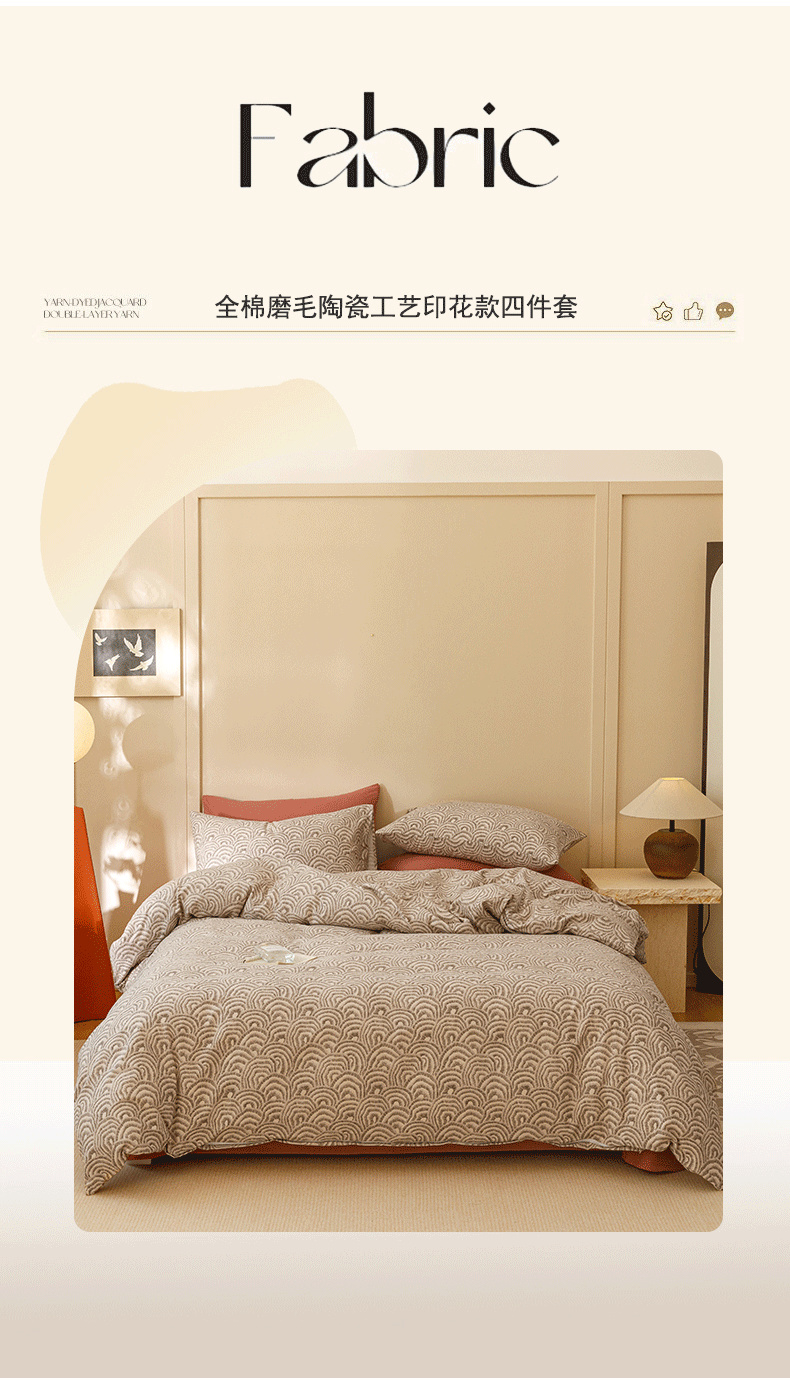 当前位置: 91家纺网 > 商品网购 > 床品套件 > 四件套 > 全棉普通四件套 > 2024新款全棉陶瓷磨毛印花四件套 瑞秋