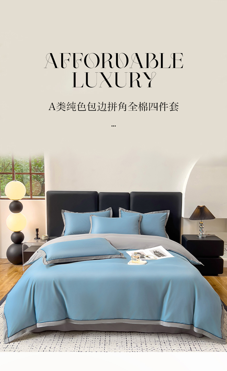 当前位置: 91家纺网 > 商品网购 > 床品套件 > 四件套 > 全棉普通四件套 > 小懒猪 2024新款全棉斜纹精梳棉双拼色拼角包边款四件套-风格一 拼角-莱茵兰-椰子灰