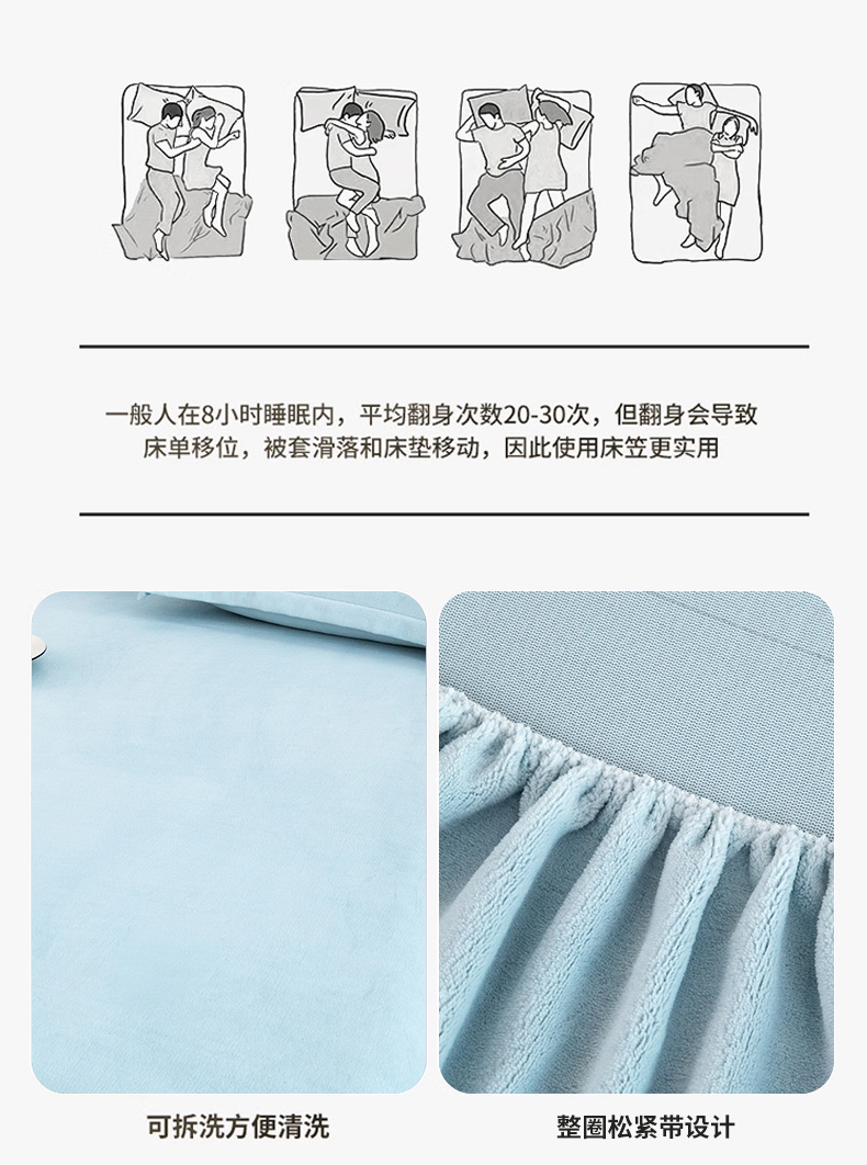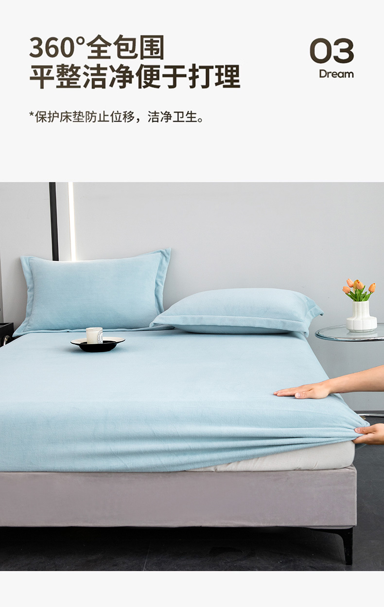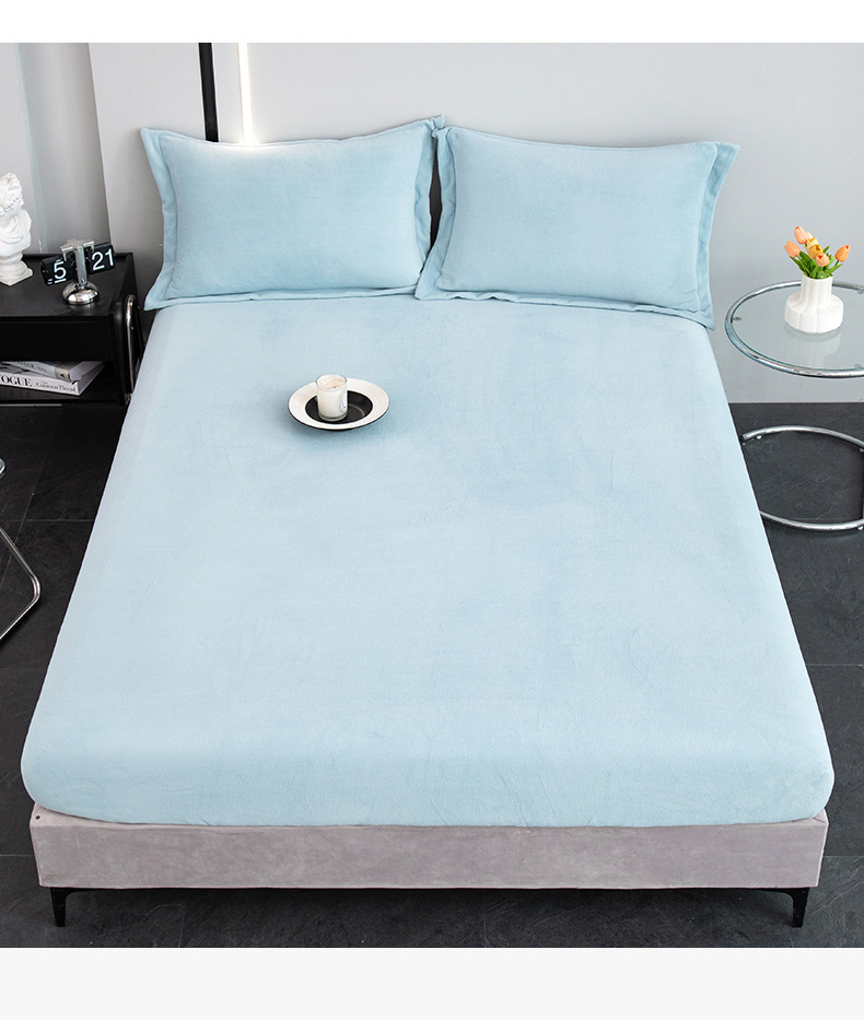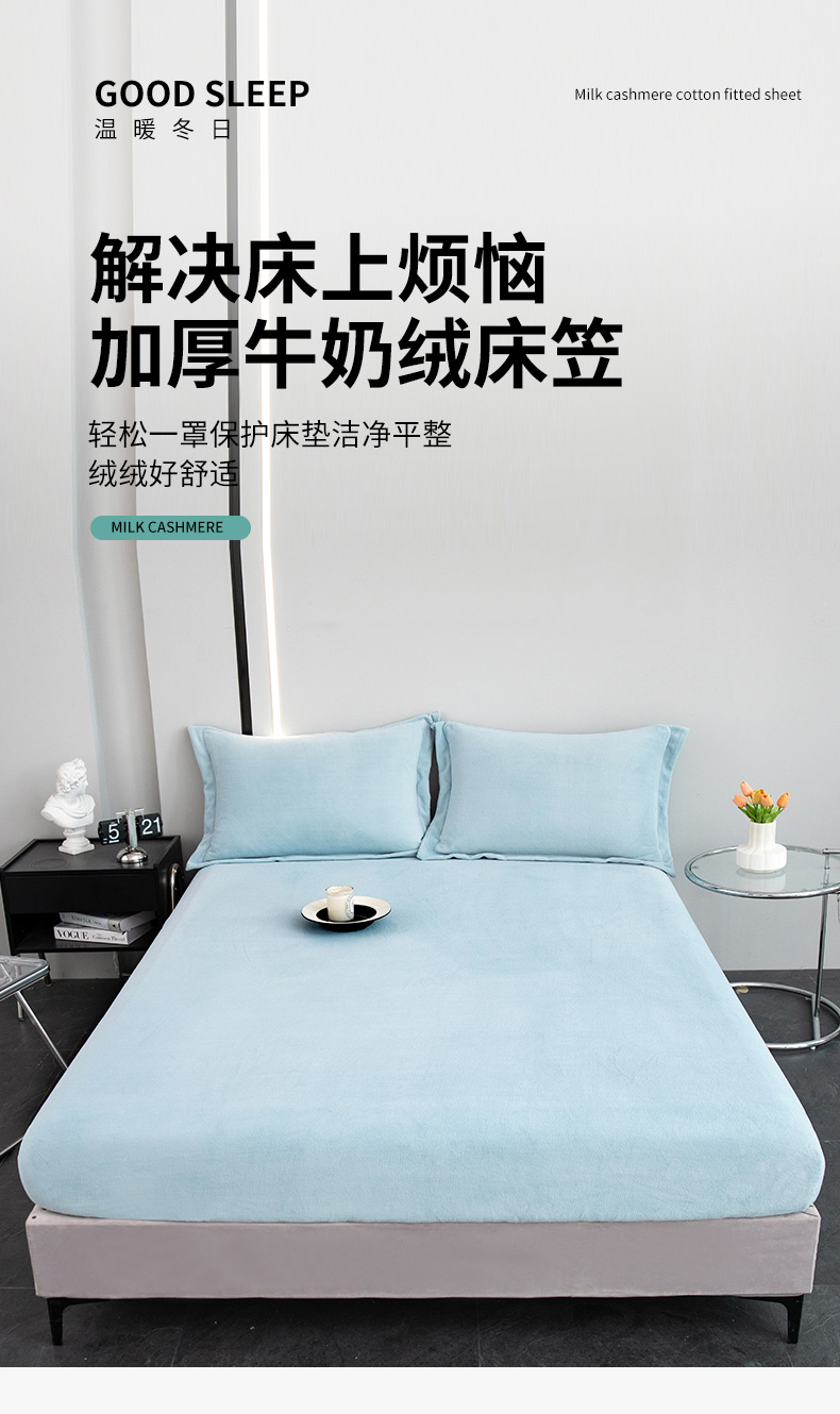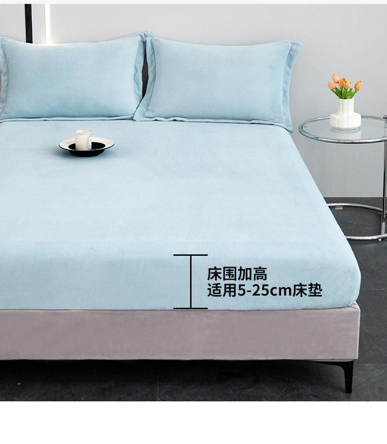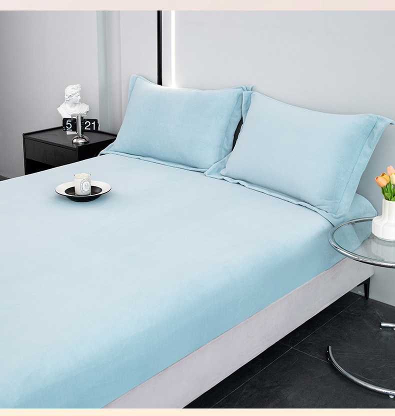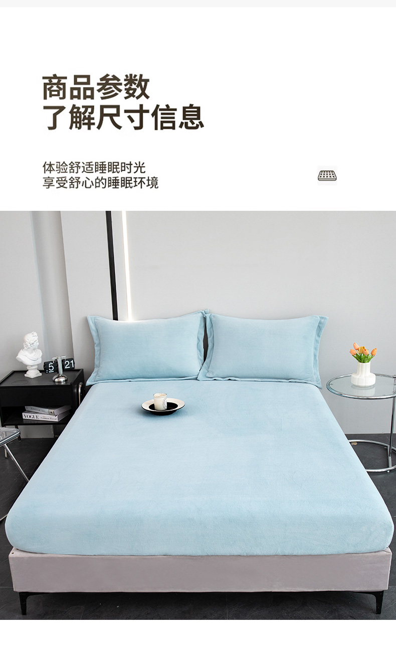 锦罗绣 2024新款230克纯色牛奶绒单床笠 水蓝