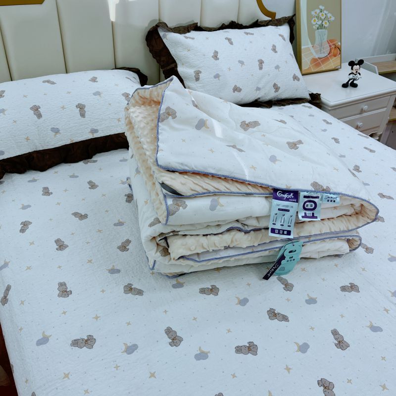 商品名称:2024新款嵌条款春秋高温砂洗法式棉花床盖三件套 星空兔