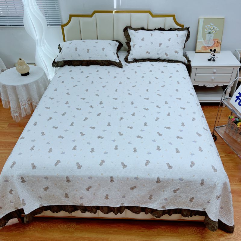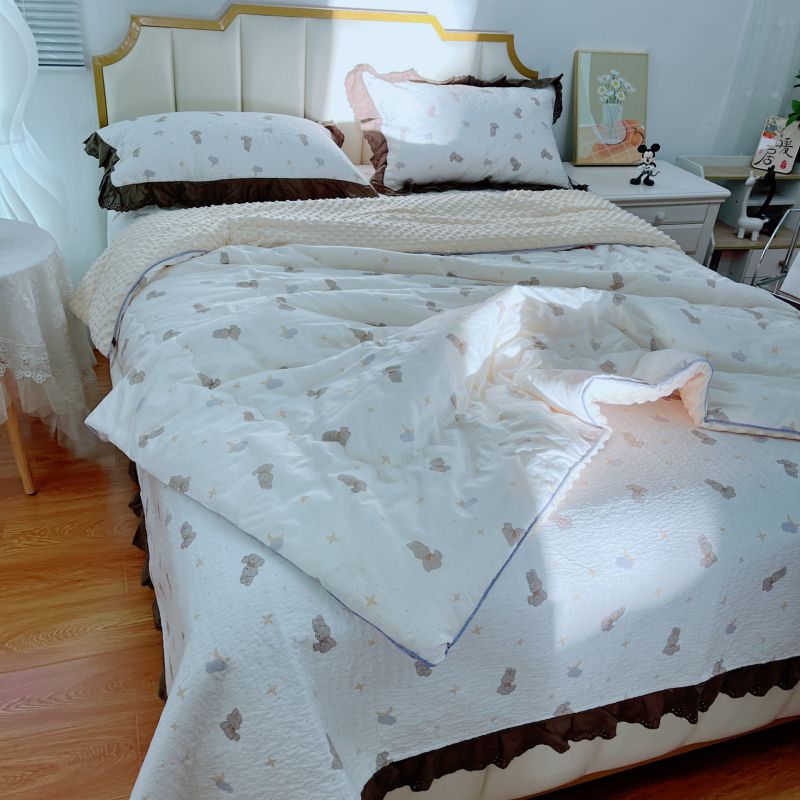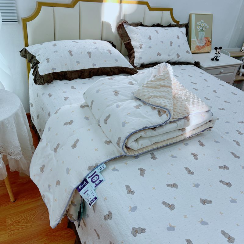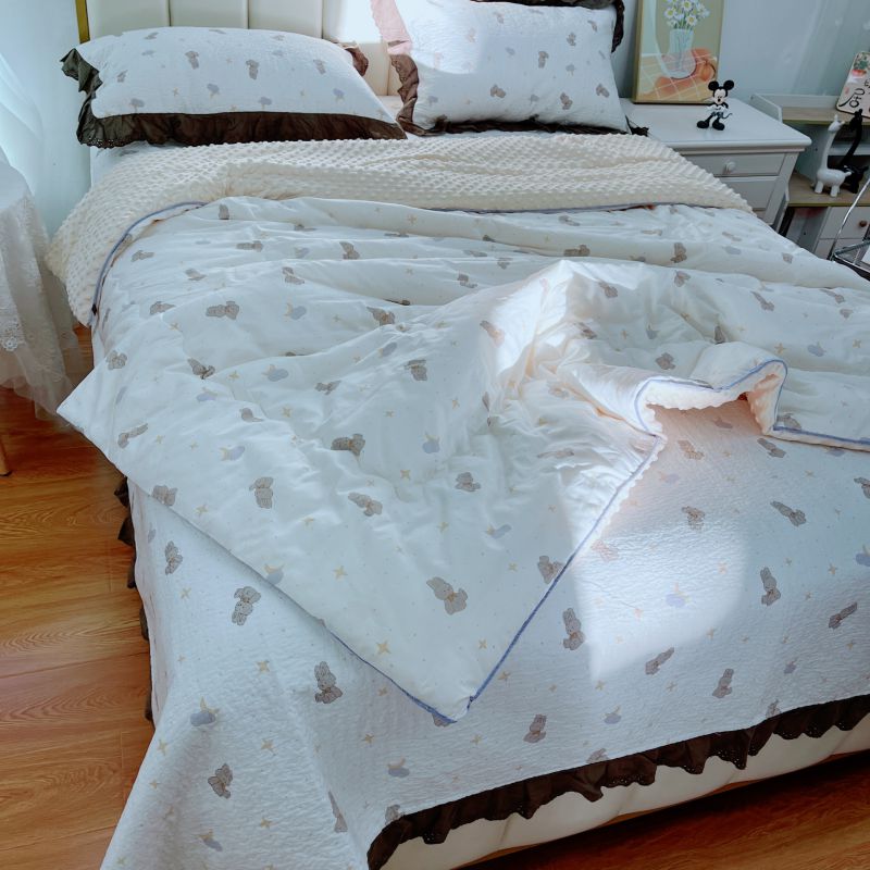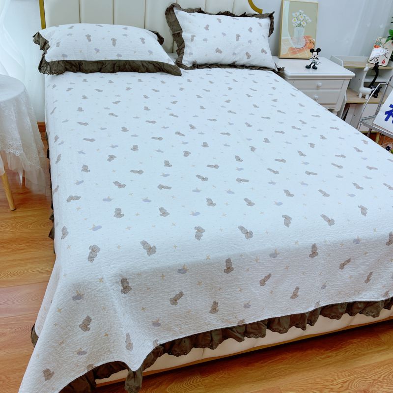 2024新款嵌条款春秋高温砂洗法式棉花床盖三件套 星空兔