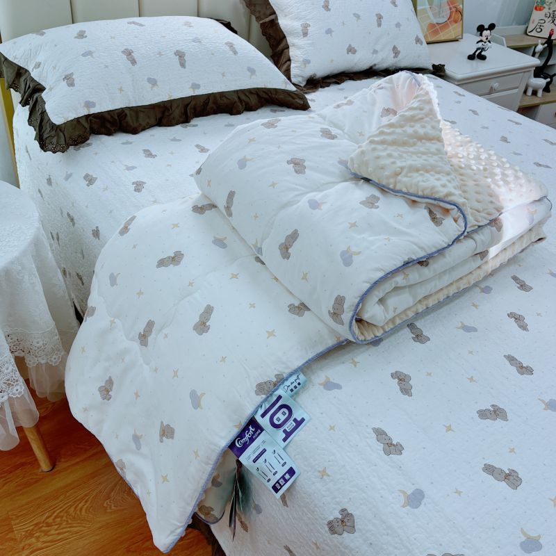 (总)暖居 2026新款一面纯棉一面绒床盖+同款纯棉豆豆被跑量,兰意,冰淇淋,绿芽,奶油波罗,森系绿野,疏影,樱桃密果,黑巧豹纹,小花,星月