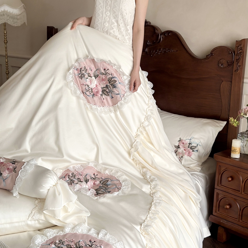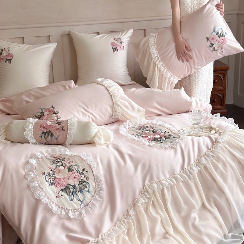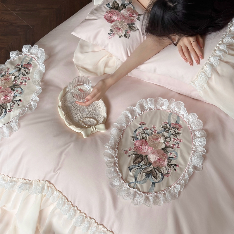 (总)MIU缪家居 2025新款100支全棉四件套-洛丽塔,洛丽塔-白,洛丽塔-粉,洛丽塔-红