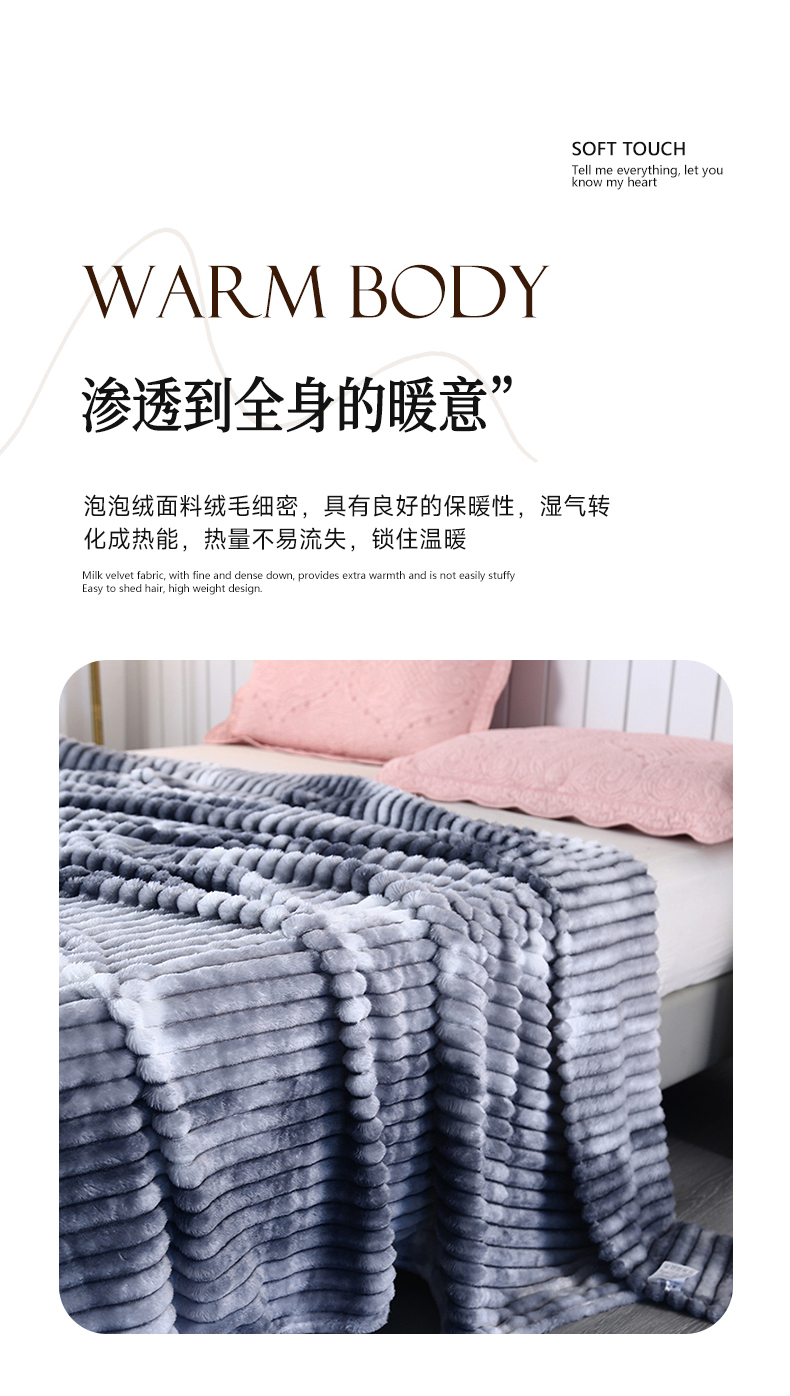 商品名称:美洲琳 2025新款仿兔毛大泡泡抽条印花毛毯 抽条灰