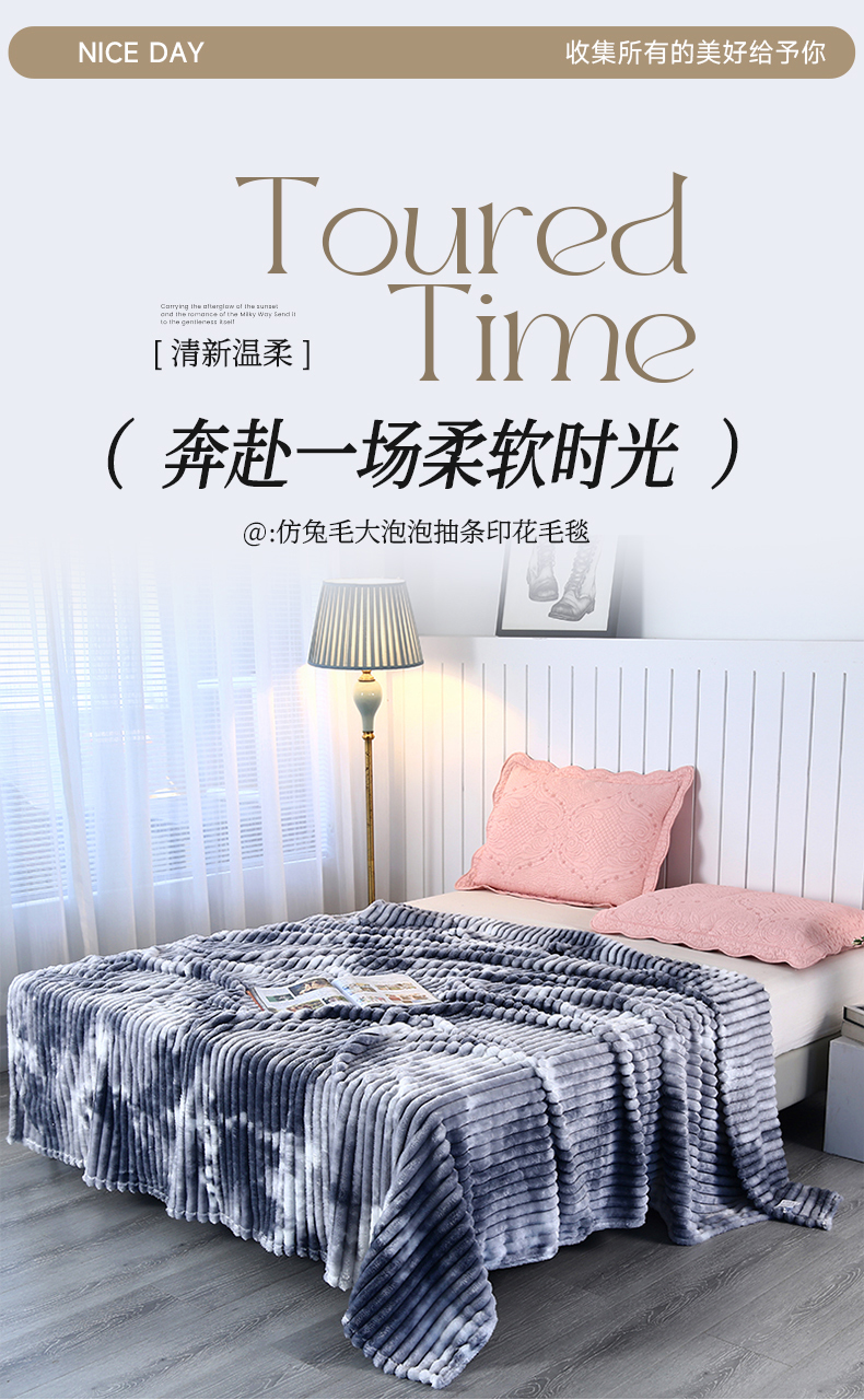 美洲琳 2025新款仿兔毛大泡泡抽条印花毛毯 抽条灰