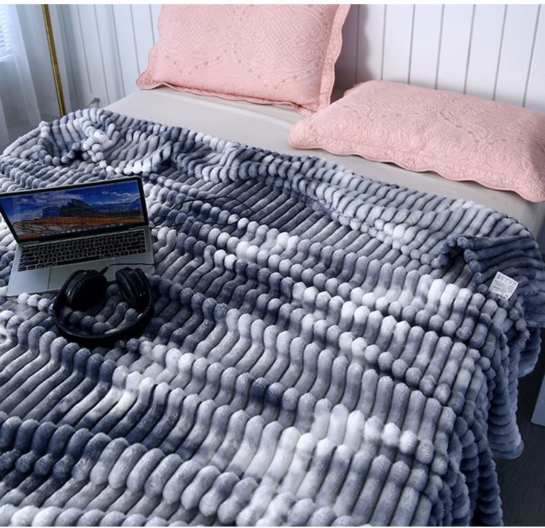 (总)美洲琳 2025新款提花简约珊瑚绒法莱绒毯毛毯毯子,白色,粉色,咖色,蓝灰,绿色,深灰