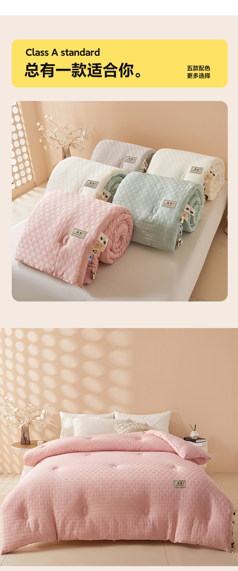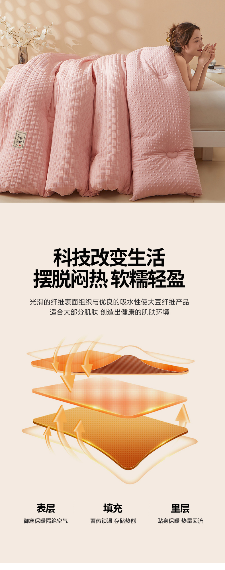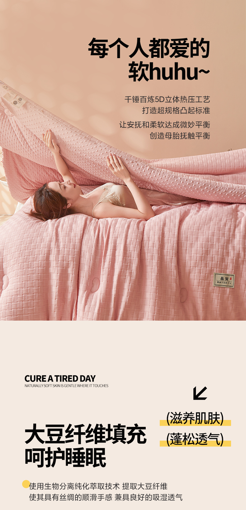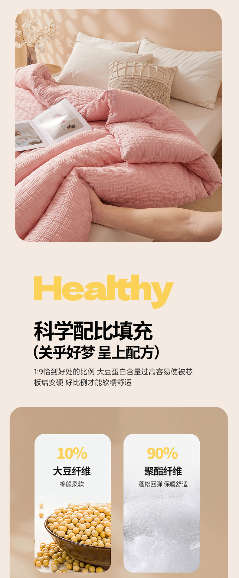 • 填充纤维种类: 大豆蛋白改性聚酯纤维