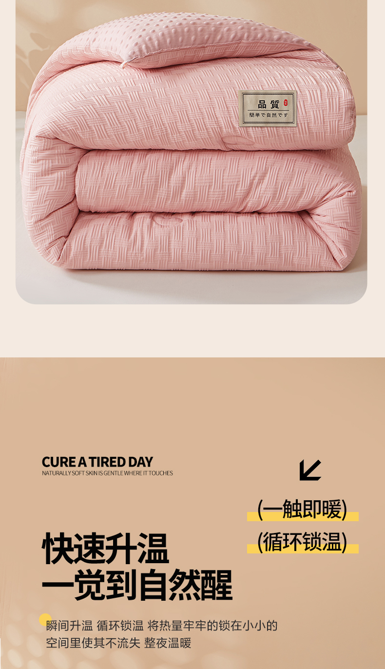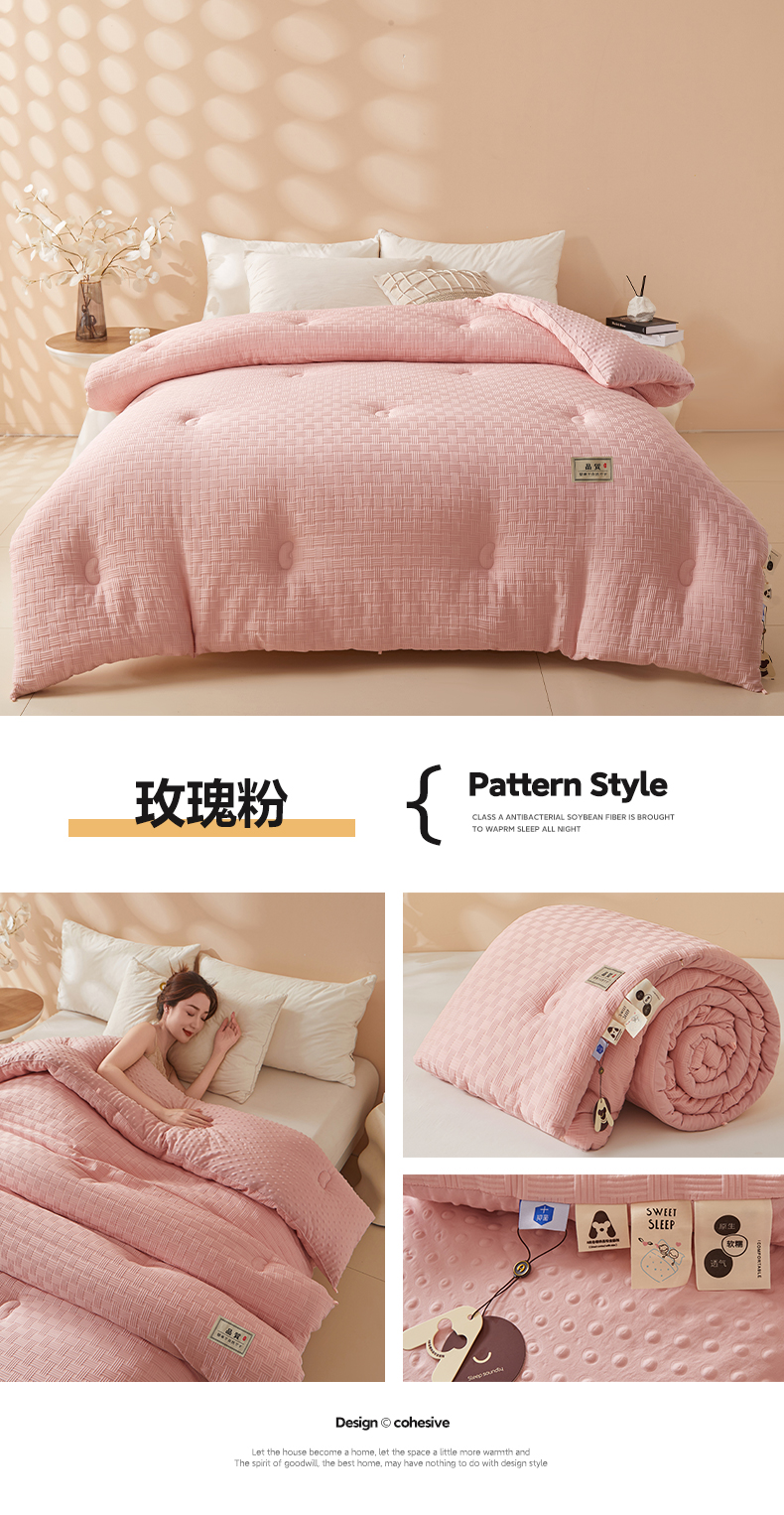 • 91家纺网 家纺一手货源 找家纺 典冠 2024新款正宗5D立体饼干花豆豆抗压冬被春秋被 玫瑰粉