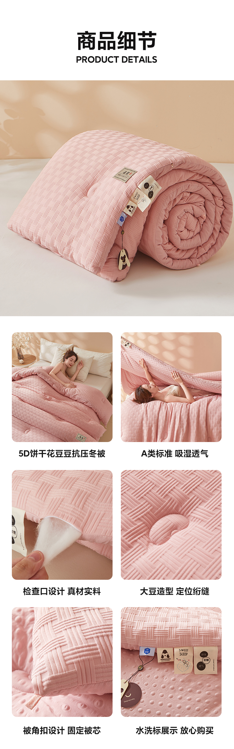 当前位置: 91家纺网 > 商品网购 > 被子 > 冬被 > 典冠 2024新款正宗5D立体饼干花豆豆抗压冬被春秋被 玫瑰粉
