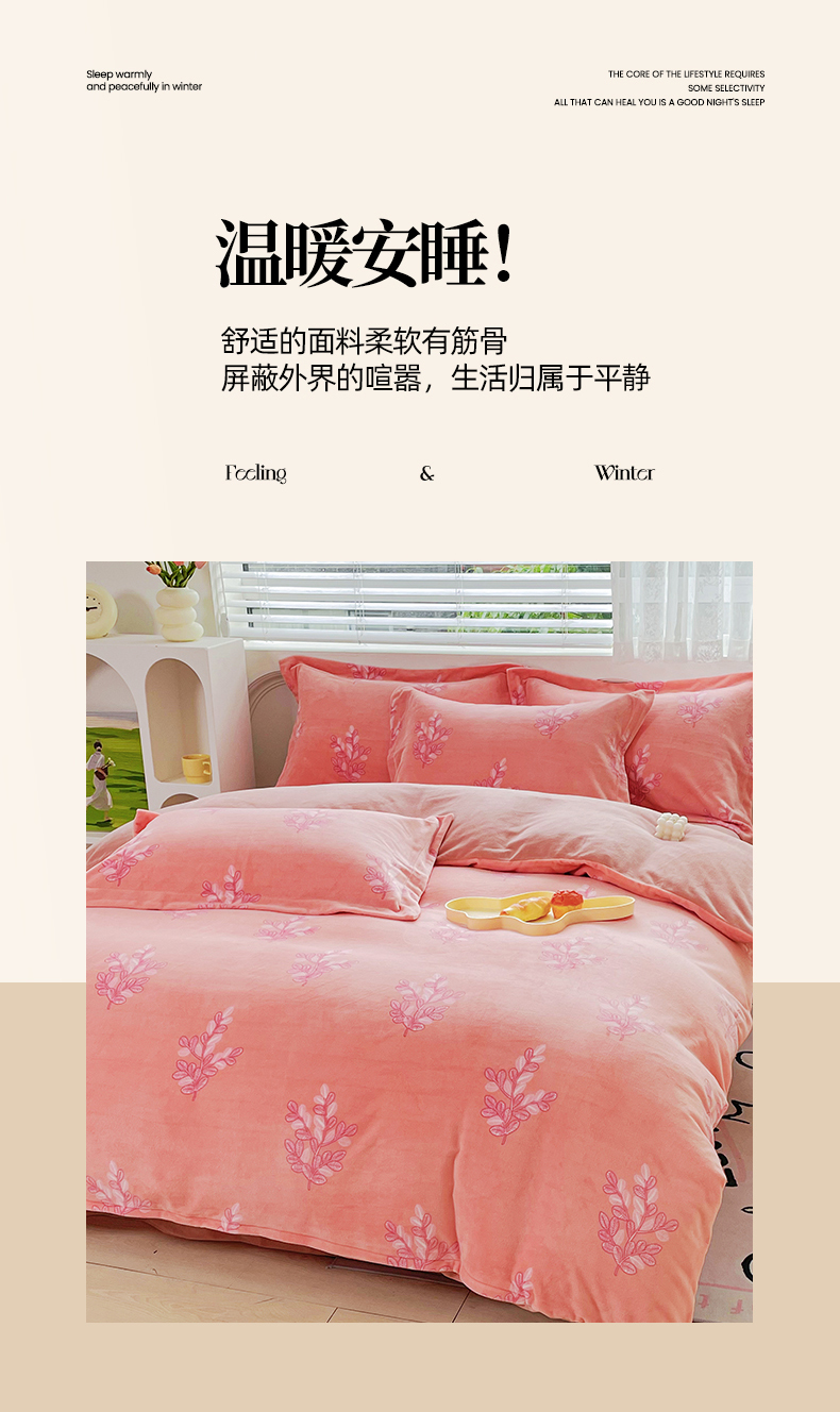 • 91家纺网 家纺一手货源 找家纺 锦罗绣 2024新款A类高克重牛奶绒印花单被套 铃兰花粉