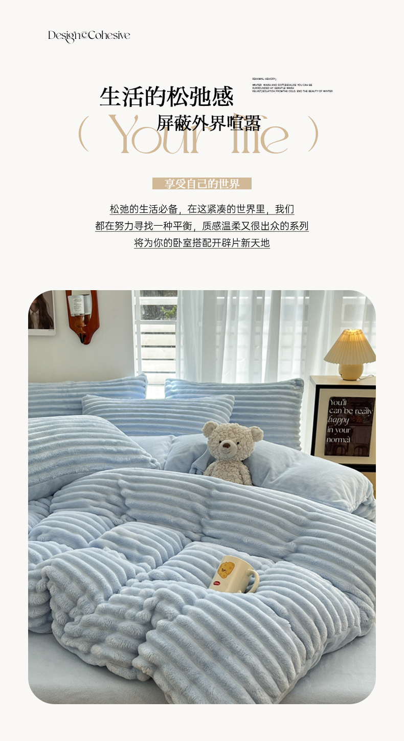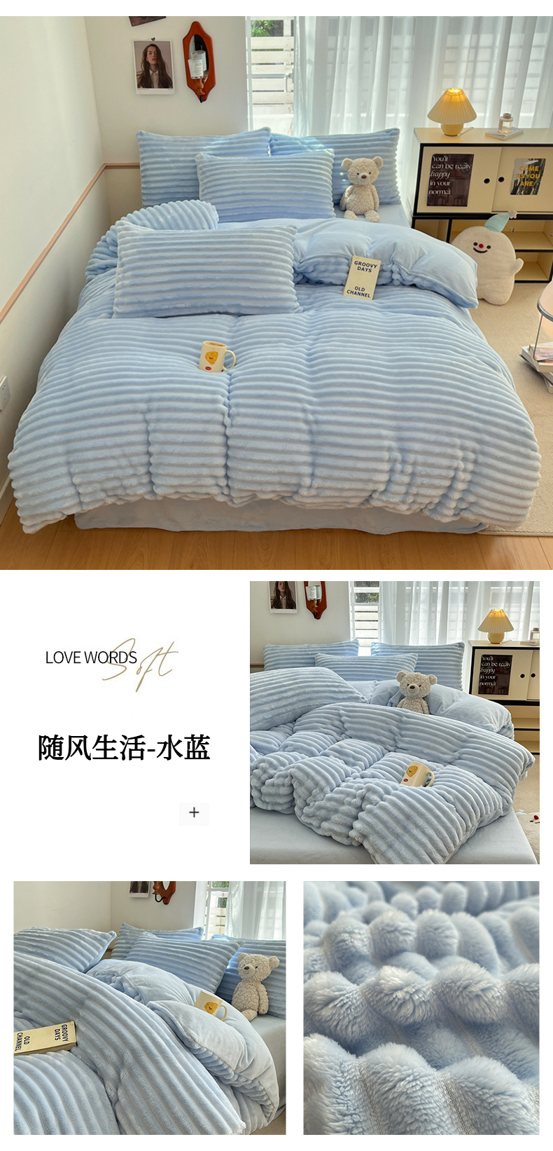川悦生活 2024新款牛奶绒兔绒四件套-随风生活 随风生活-水蓝