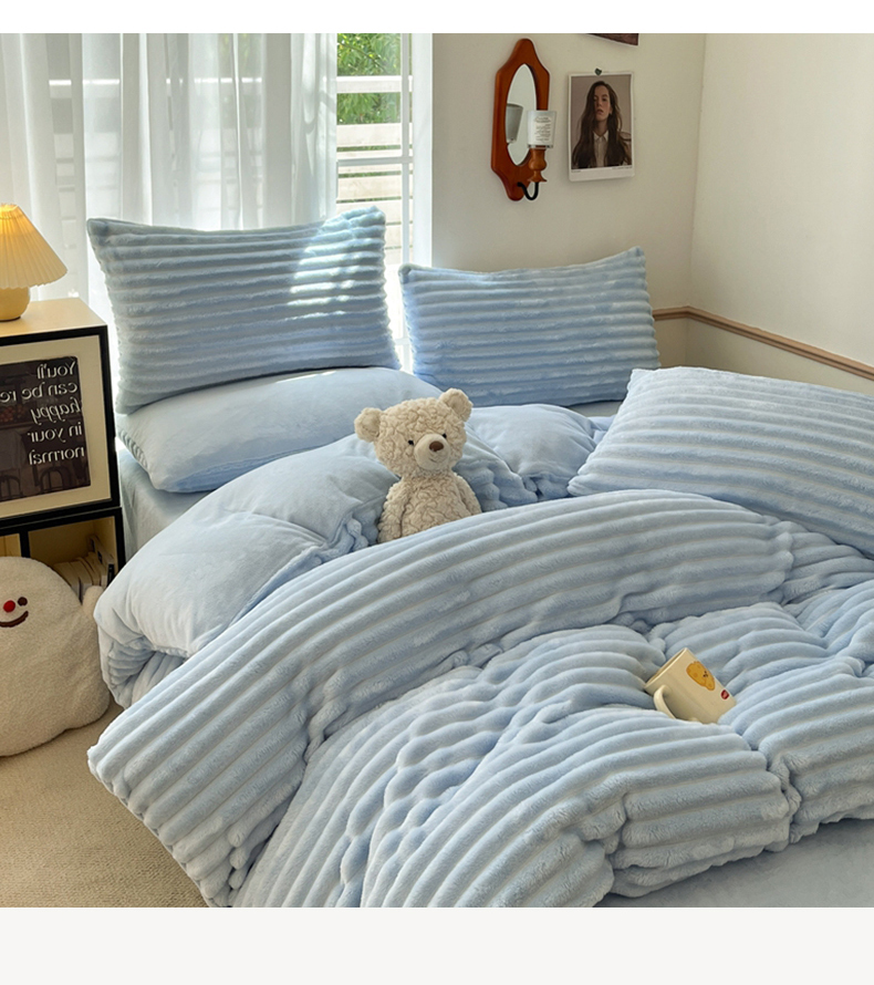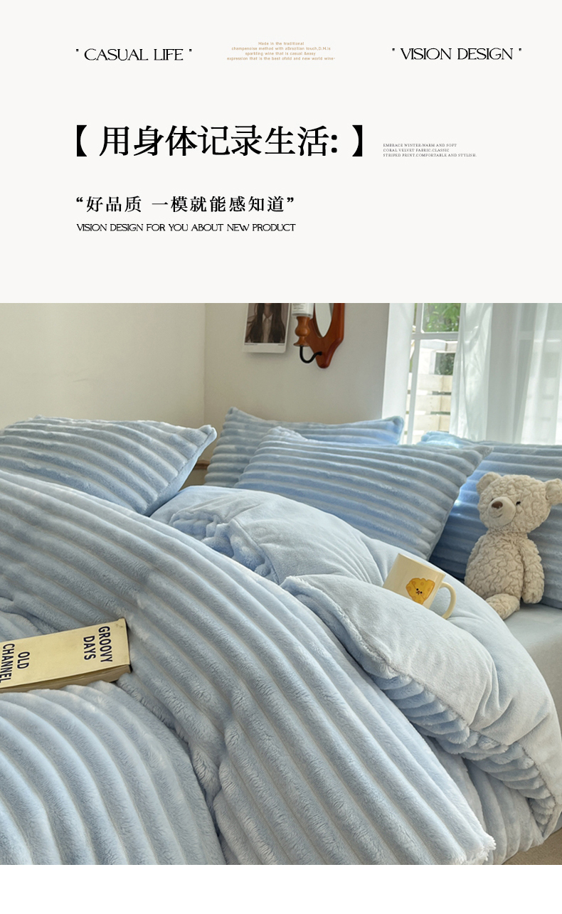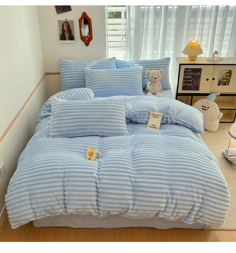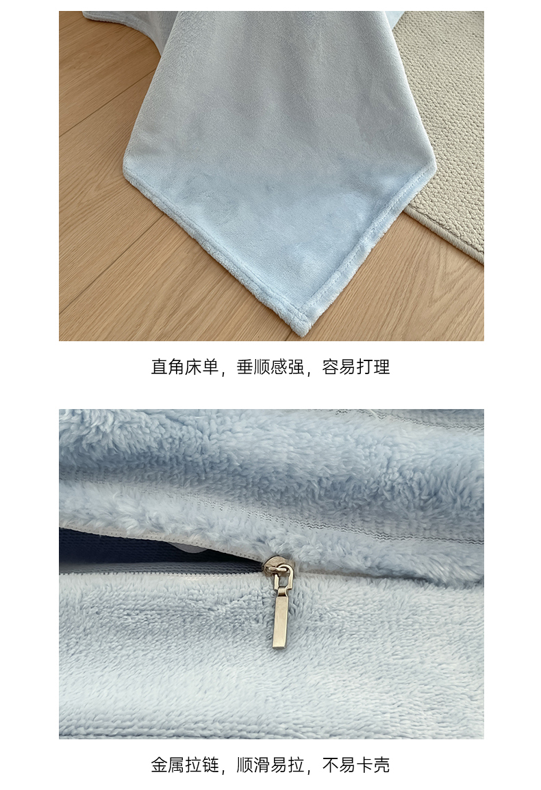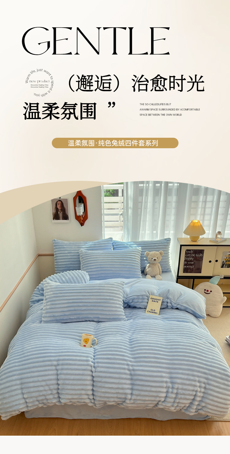 商品名称:川悦生活 2024新款牛奶绒兔绒四件套-随风生活 随风生活-水蓝