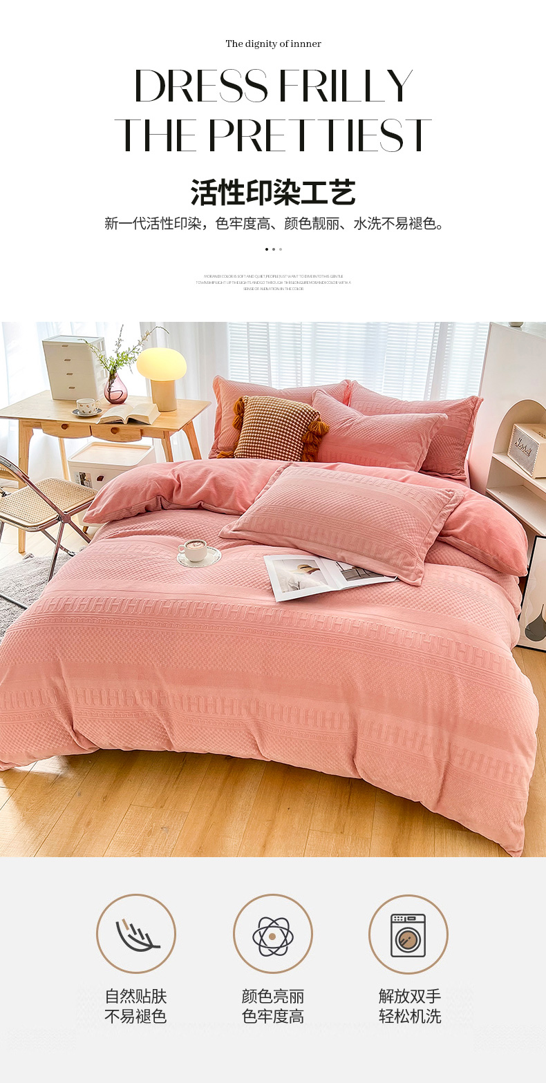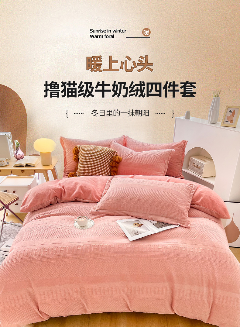 当前位置: 91家纺网 > 商品网购 > 床品套件 > 四件套 > 牛奶绒四件套 > 锦罗绣 2024新款全消光230克牛奶绒烂花绒提花四件套 H-玉