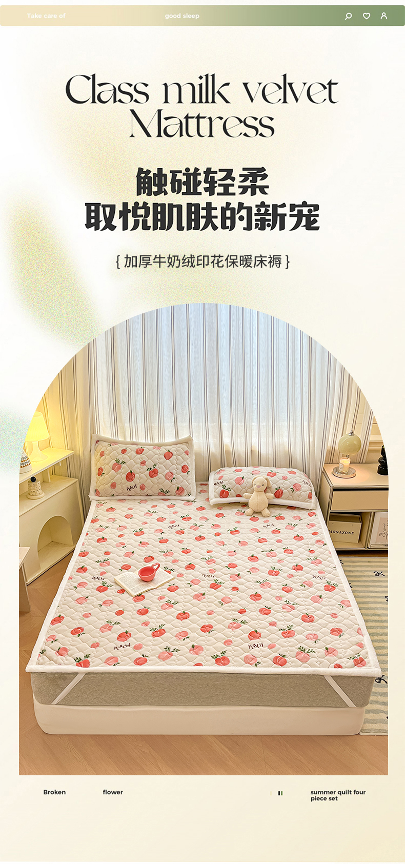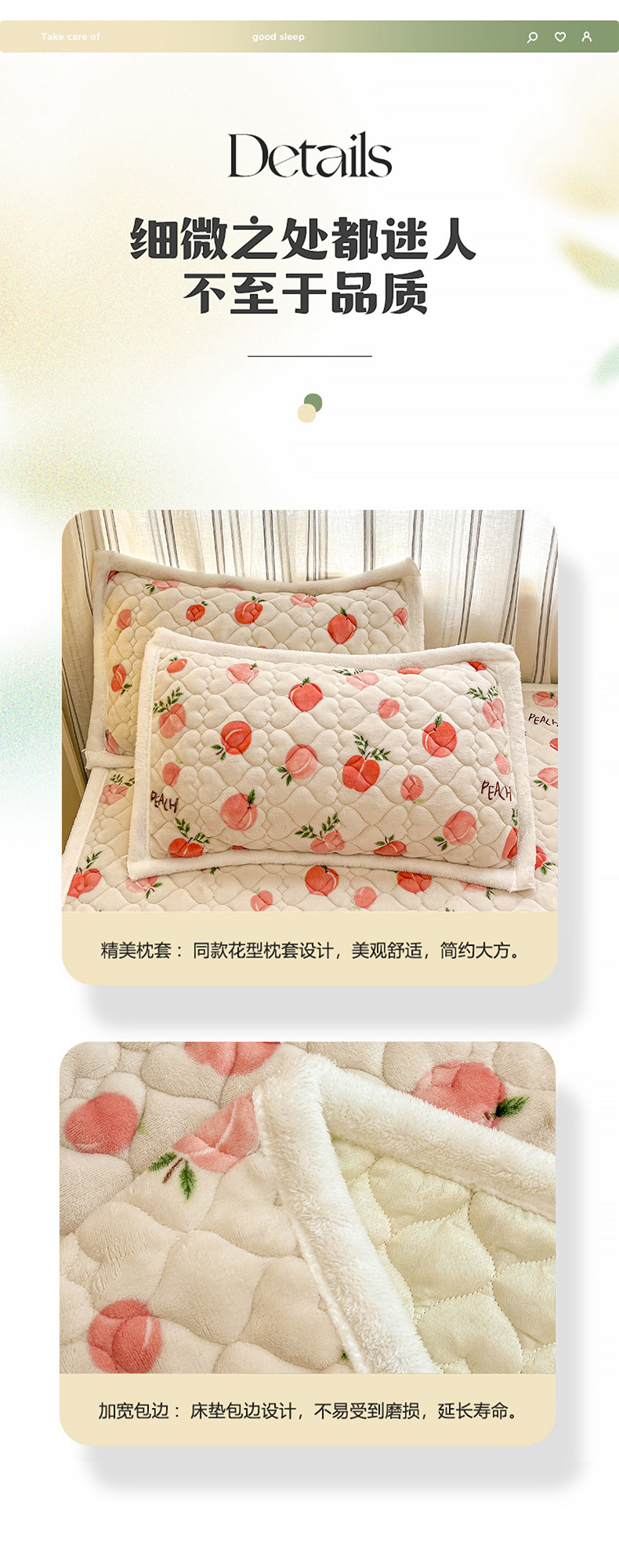 当前位置: 91家纺网 > 商品网购 > 床垫/床褥 > 普通床垫 > 启程家纺 2024新款A类印花牛奶绒床垫加厚绒保暖床护垫 水蜜桃