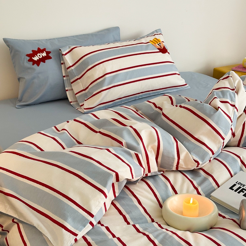 (总)2023新款40支纱全棉13070锁边工艺款四件套系列,格子爱心,嘉兰,咖条,朗尼,小兔兔,星星兔