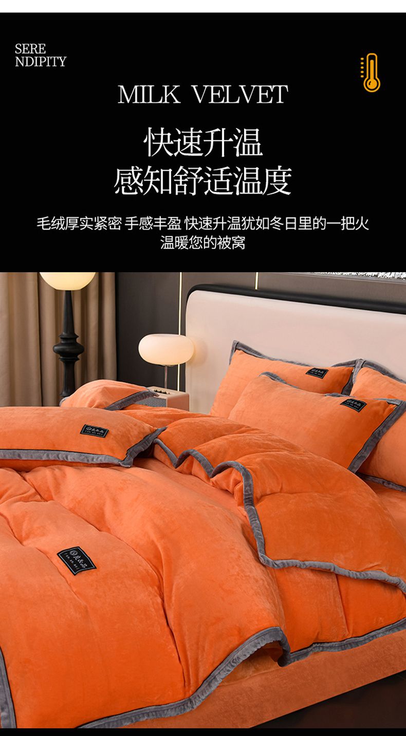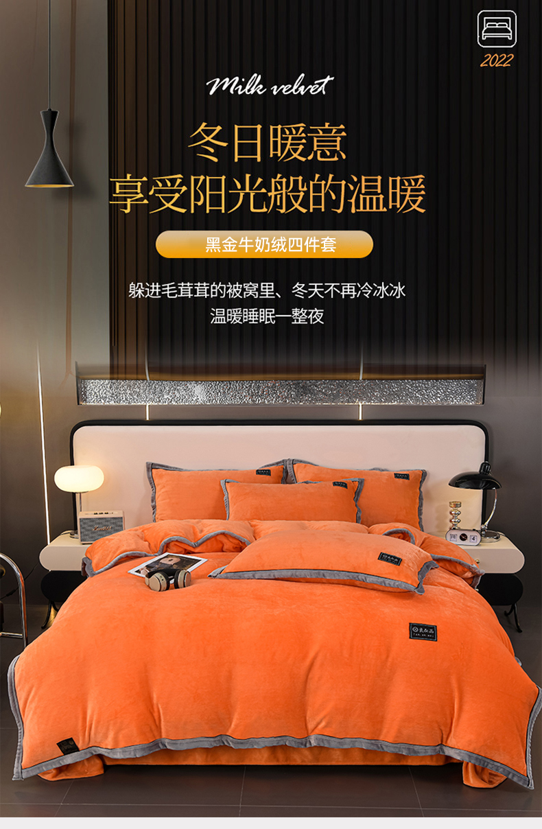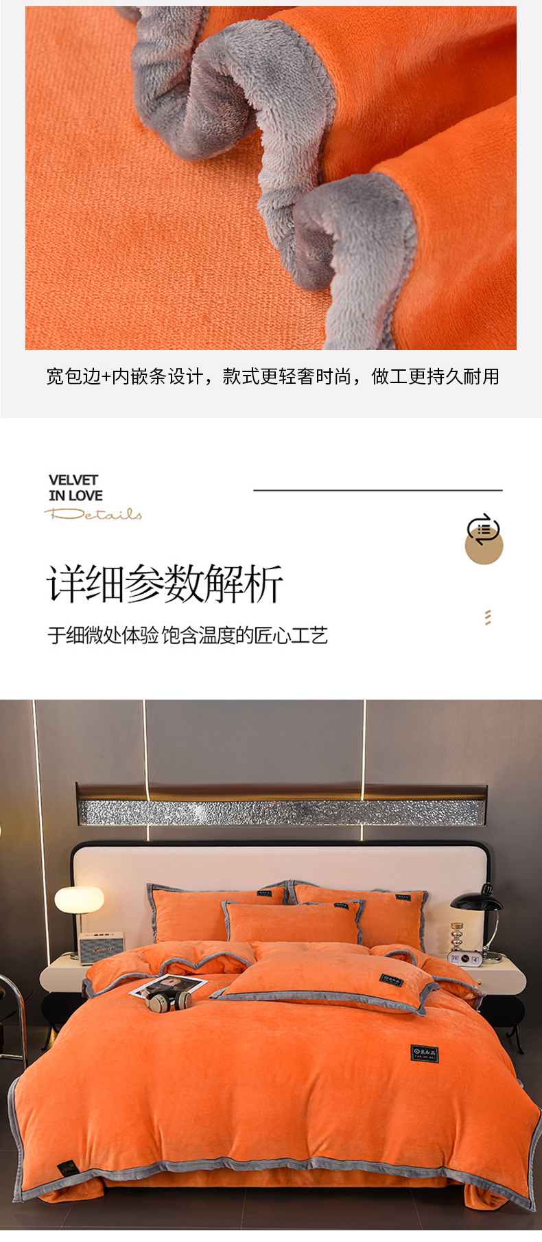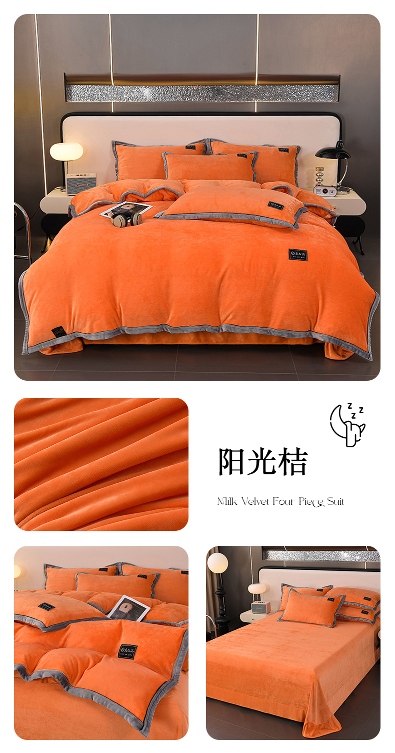 商品名称:绒耀2025纯色加厚牛奶绒四件套轻奢款大包边素色直播爆款 阳光桔