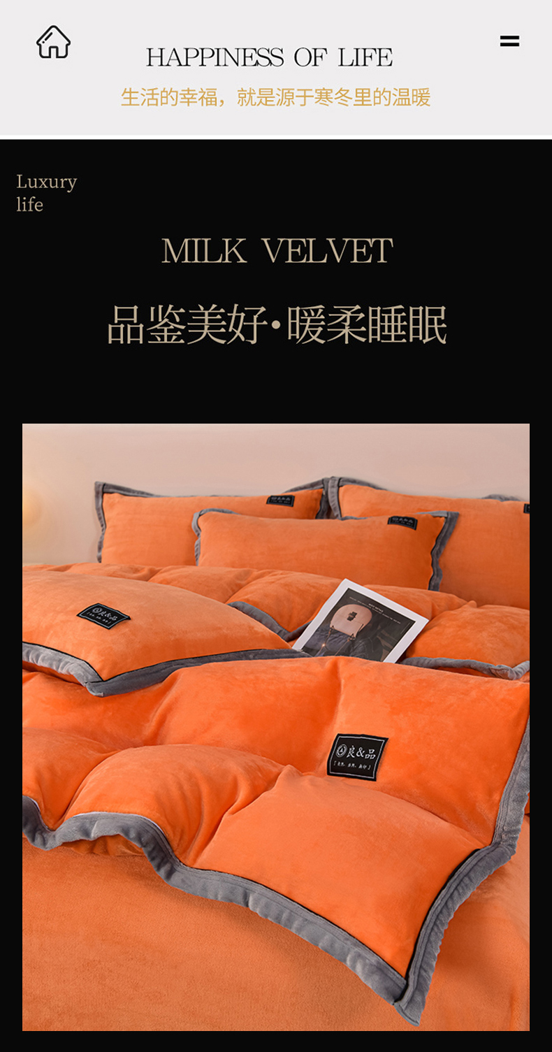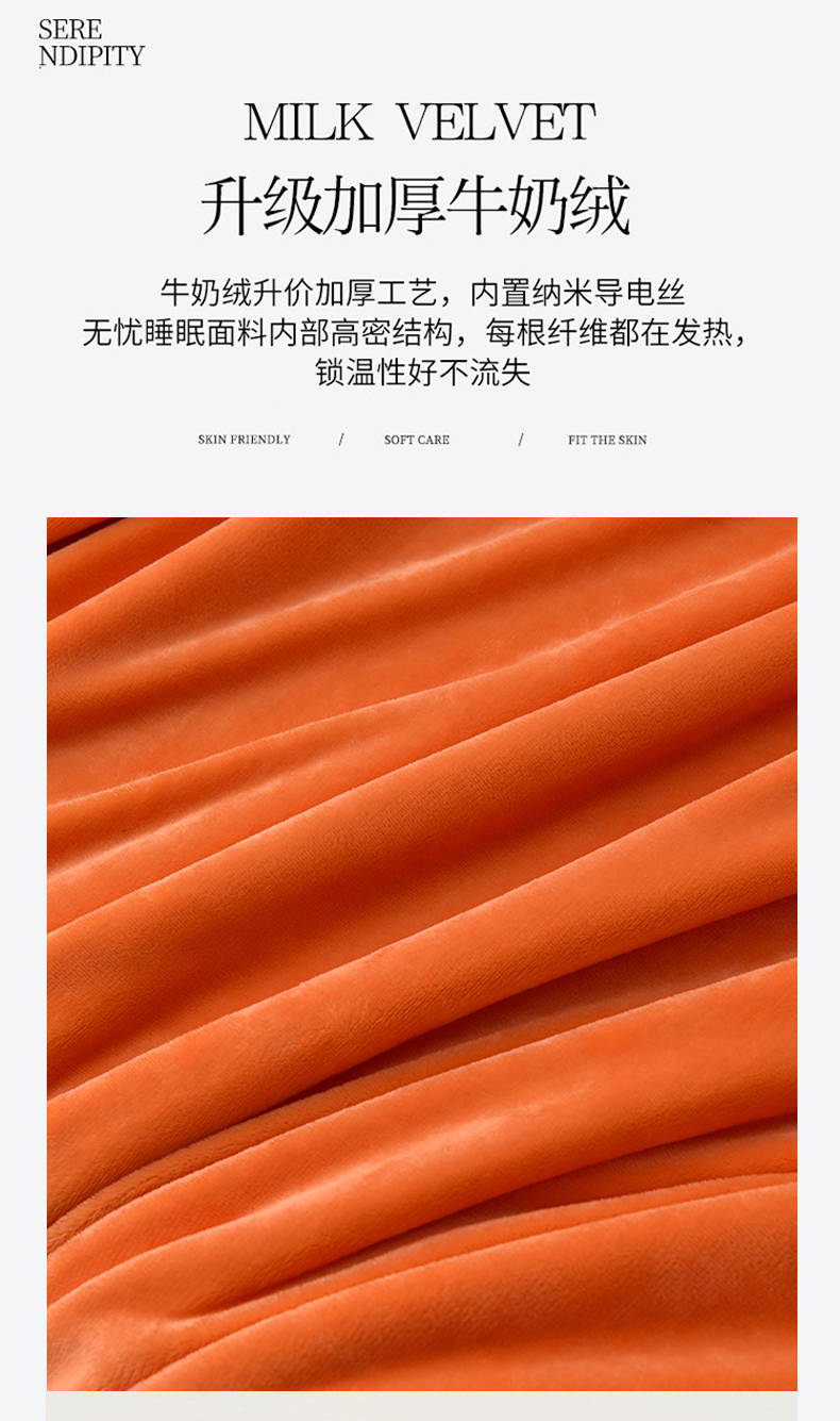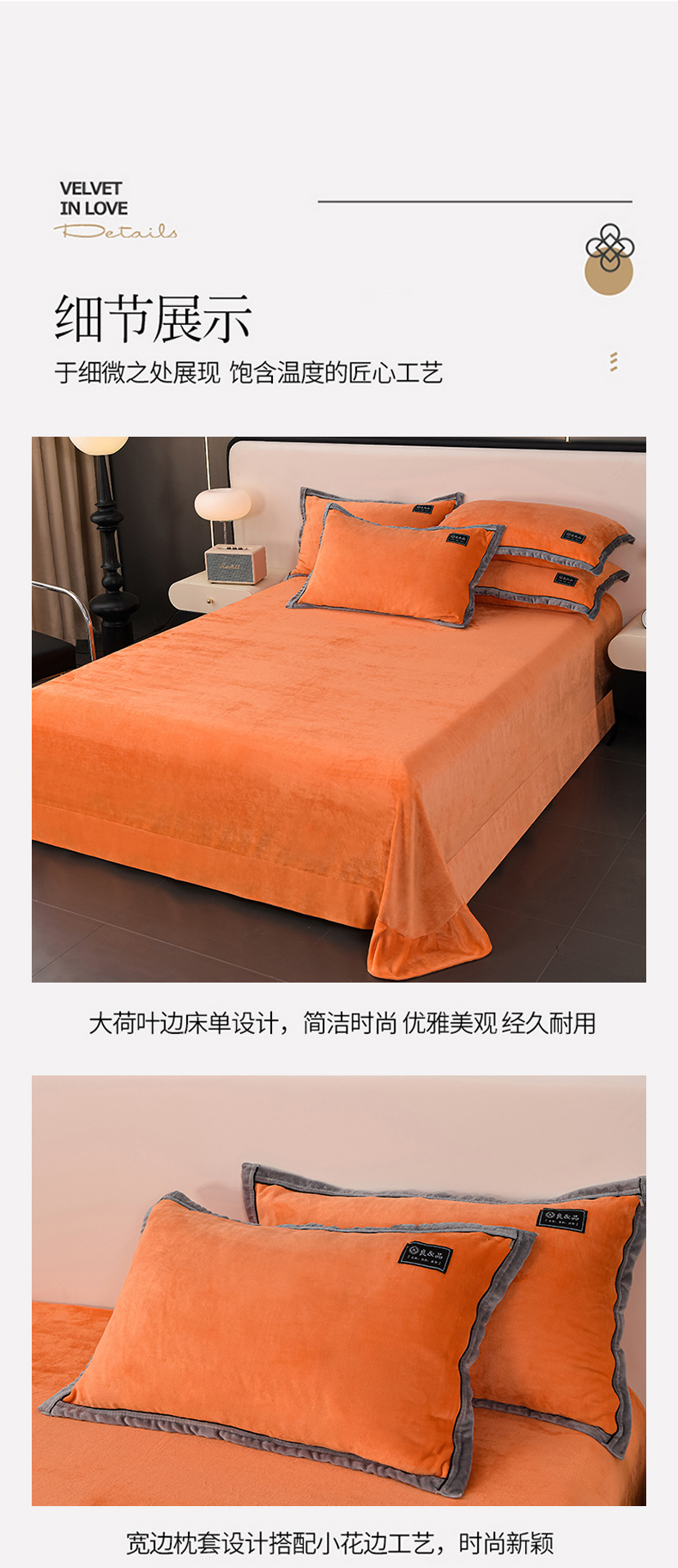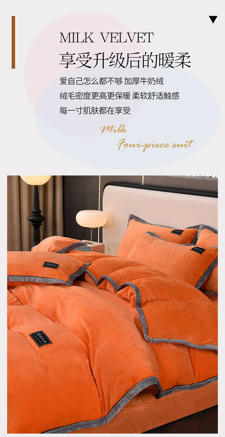 商品名称:绒耀2025纯色加厚牛奶绒四件套轻奢款大包边素色直播爆款 阳光桔