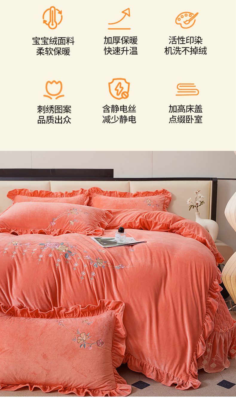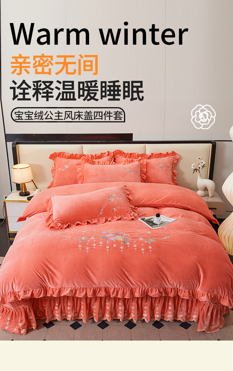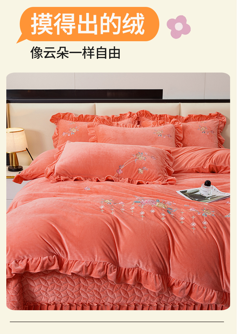 当前位置: 91家纺网 > 商品网购 > 床品套件 > 四件套 > 其它四件套 > 2024秋冬新款茉含宝宝绒公主风四件套 梦想粉-