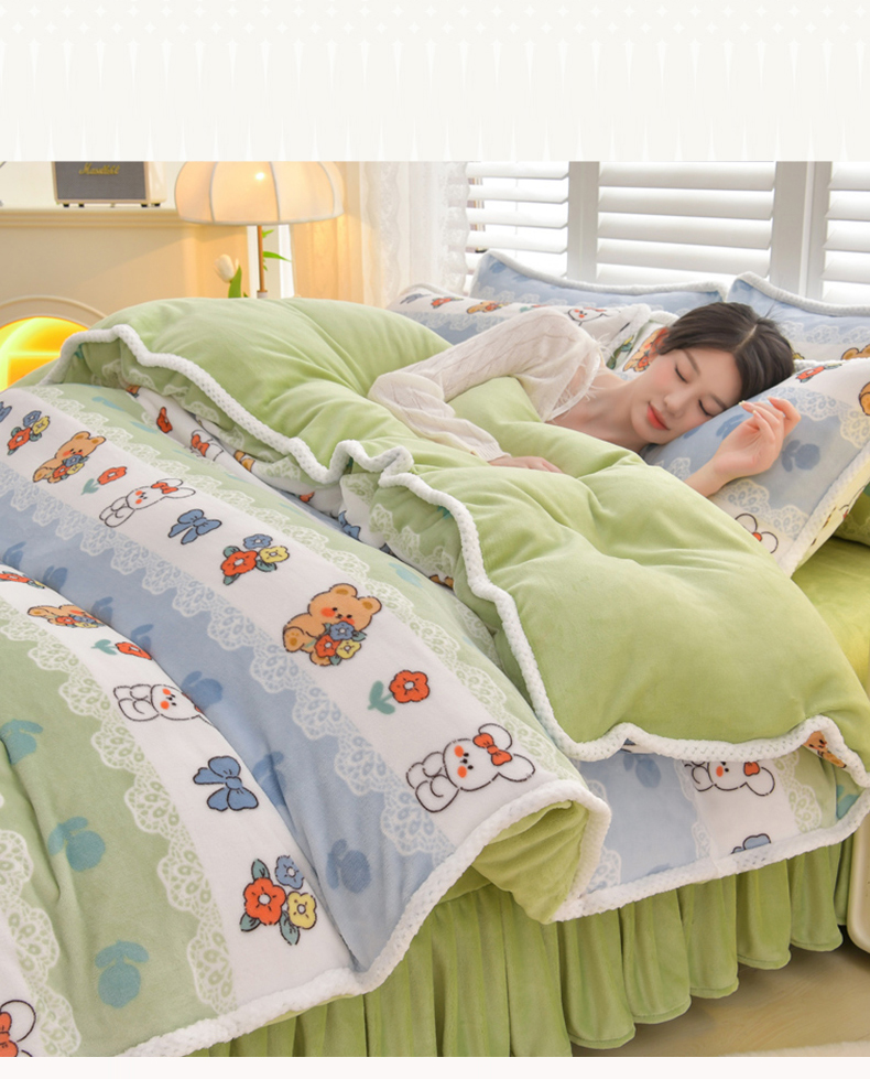绒耀 2025新款高克重牛奶绒四件套保暖四件套直播爆款电商爆款 甜蜜乐园