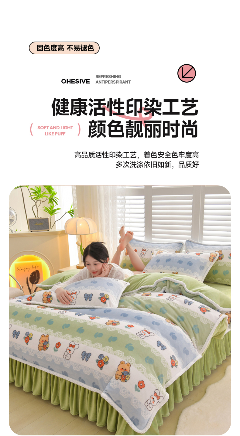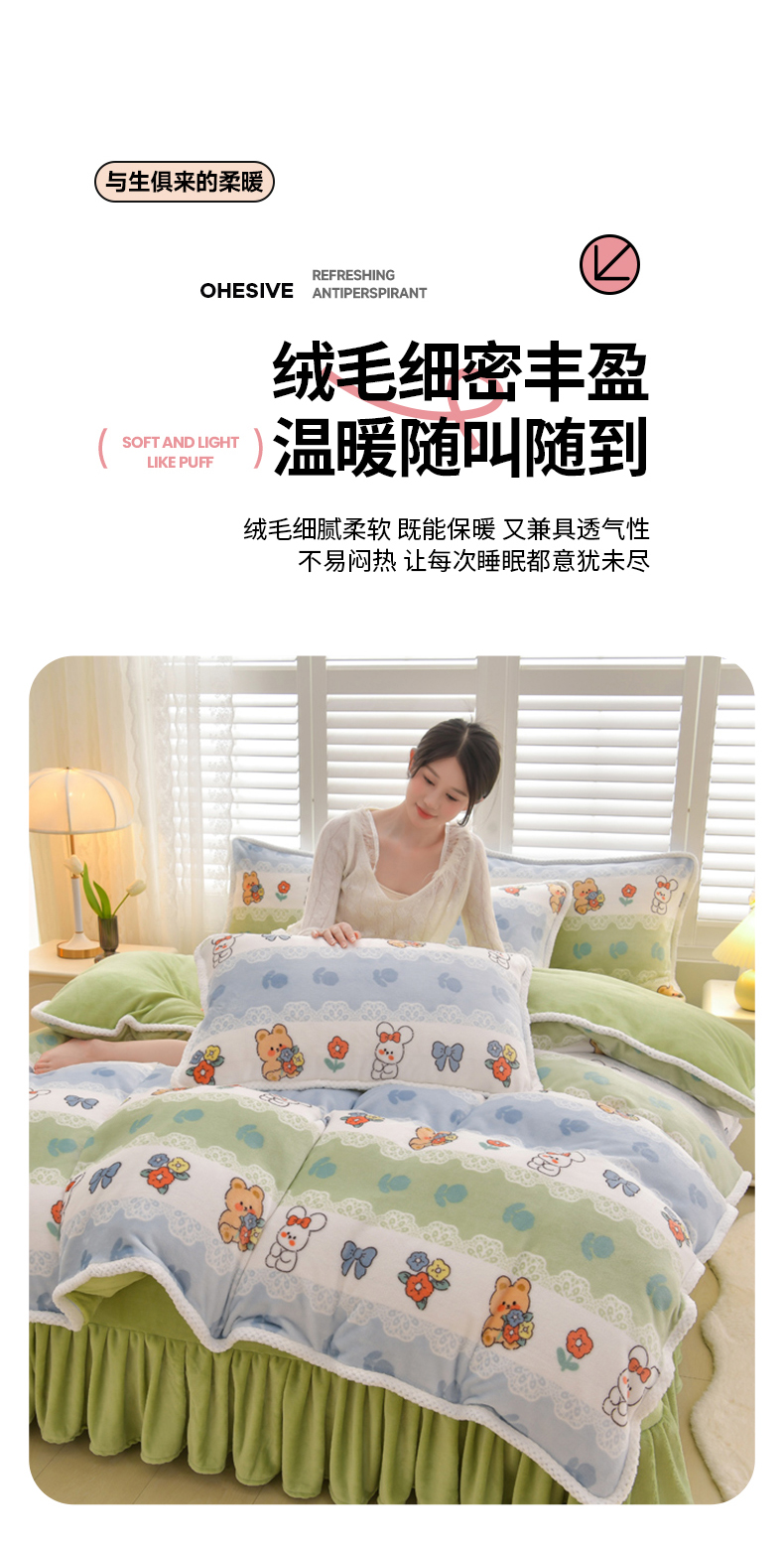 商品名称:绒耀 2025新款高克重牛奶绒四件套保暖四件套直播爆款电商爆款 甜蜜乐园