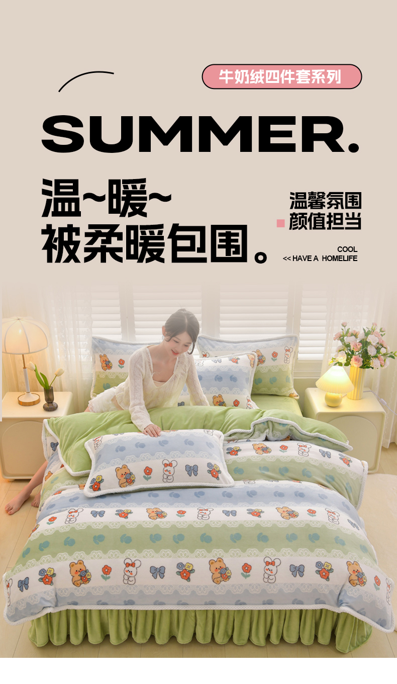 (总2)绒耀 2025新款高克重8.5斤小包边牛奶绒四件套保暖四件套直播爆款电商爆款,金枝玉叶,恒爱,似水柔情,雅格尔,哪吒宝贝,企鹅乐园,简奢,爱之语,百年好合,爱丽丝,宝利熊,财源滚滚,朝夕相伴,春意阑珊,迪兰特,粉格,风姿冶丽,告白,闺蜜兔,含情,花开朵朵,花开富贵,黄金叶,今生有你,金玉满堂,锦上添花,怜香惜玉,满满爱意,曼珠沙华粉,曼珠沙华桔,米菲兔,莫奈花园,奶牛派对,千鸟格,情谊绵绵,三生有幸,时尚英伦,香奈花开,小幸运,小熊维尼,心心相印,幸运连连,幸运时光-粉,叶语柔情,音乐狗,映山红,掌柜熊,挚爱-蓝,字母熊
