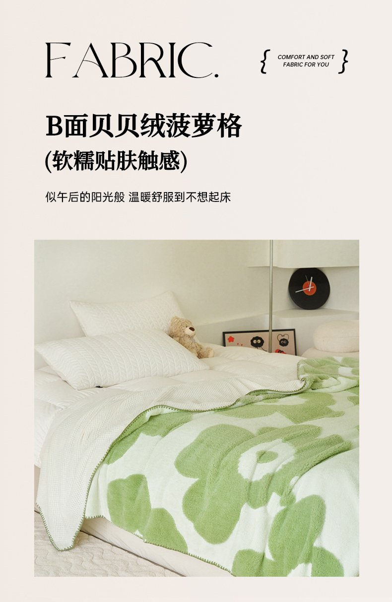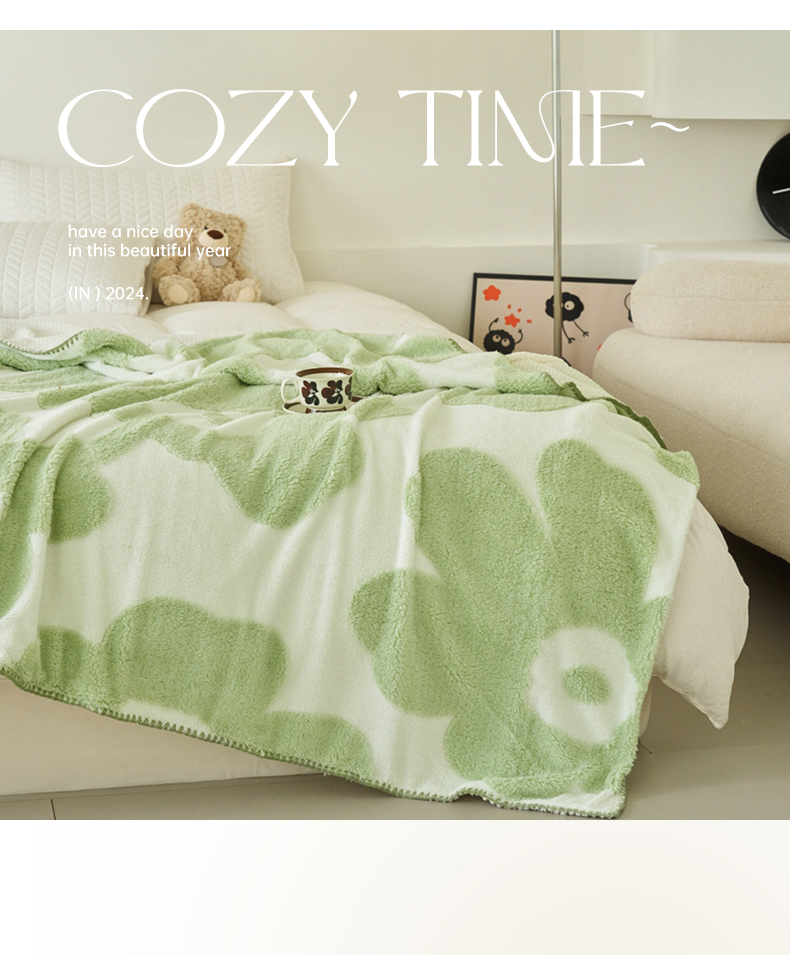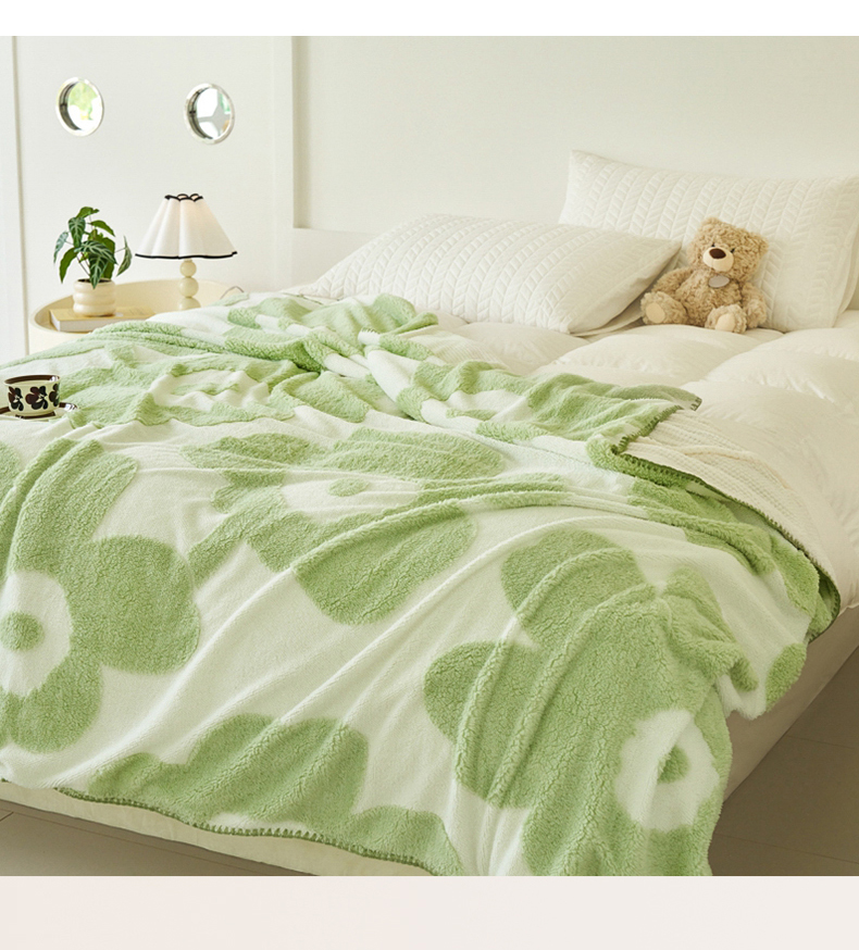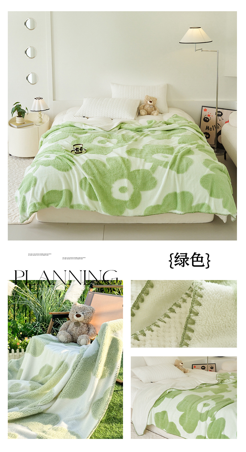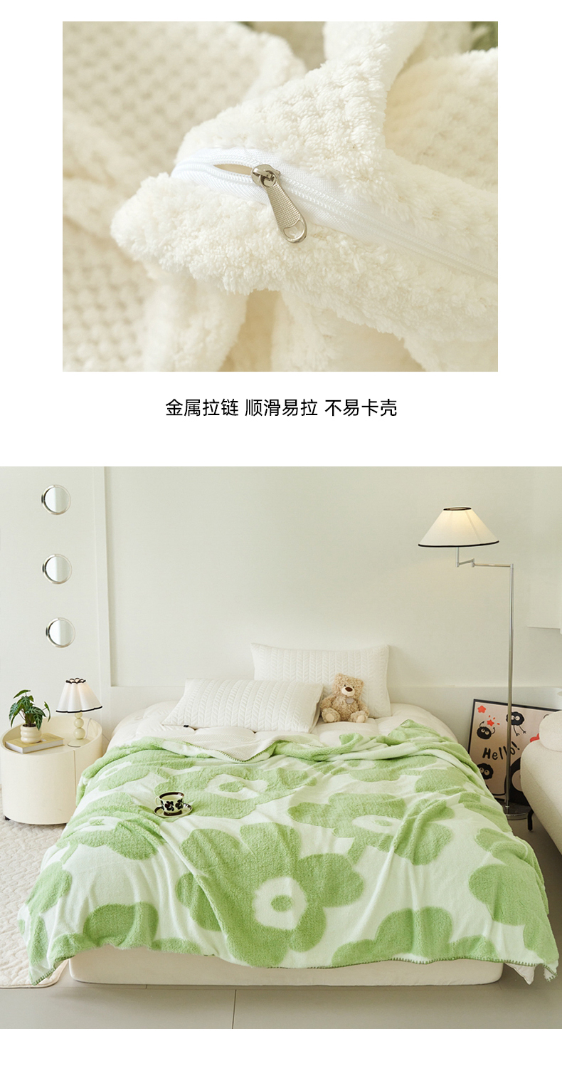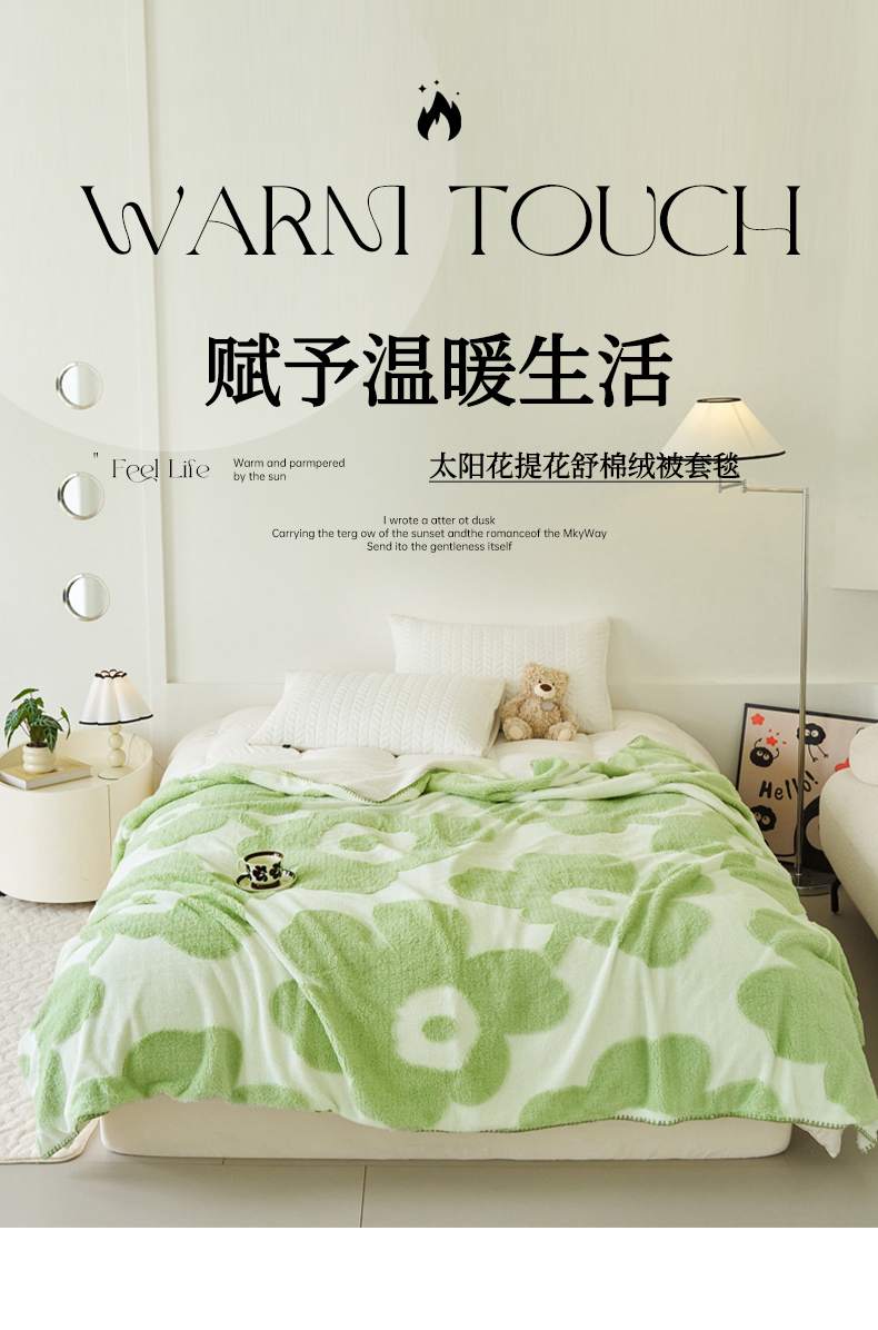 商品名称:恋佳居 2025新款太阳花舒棉绒被套毯 绿色