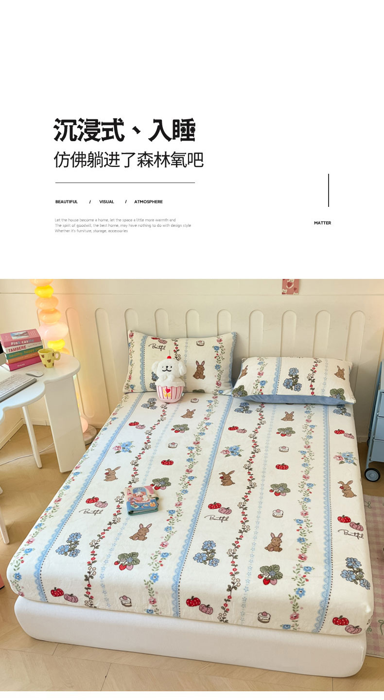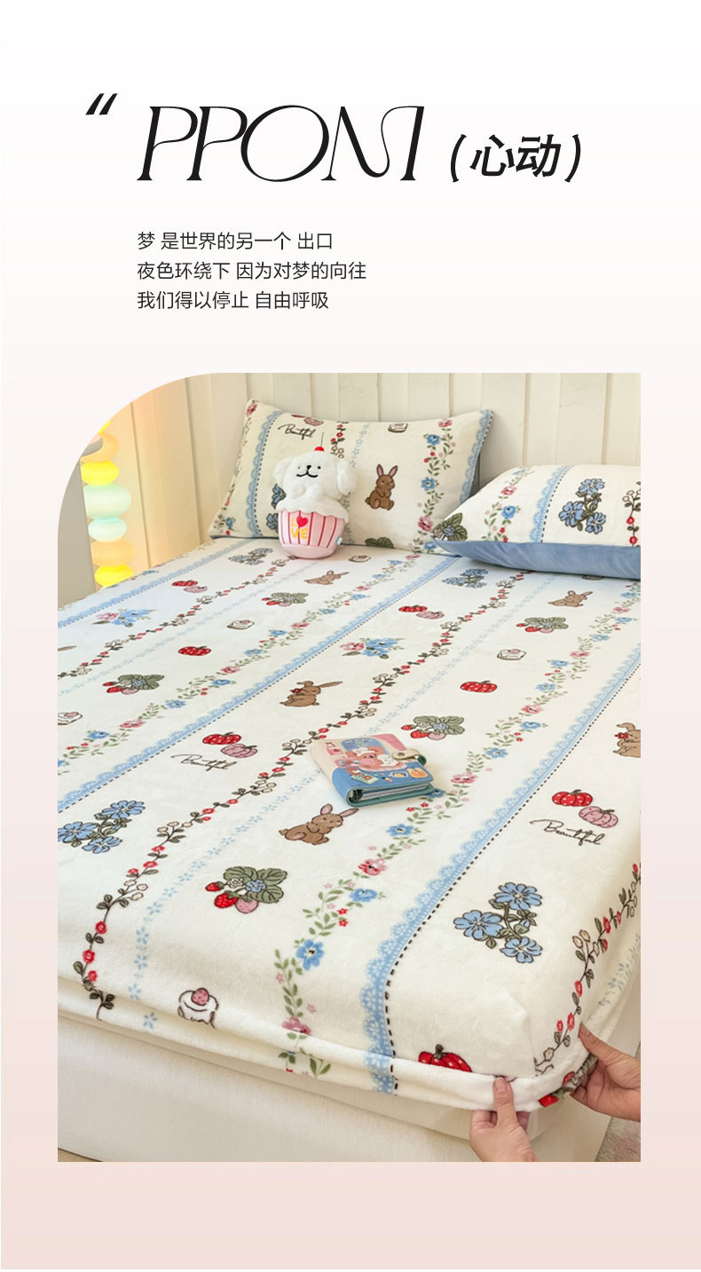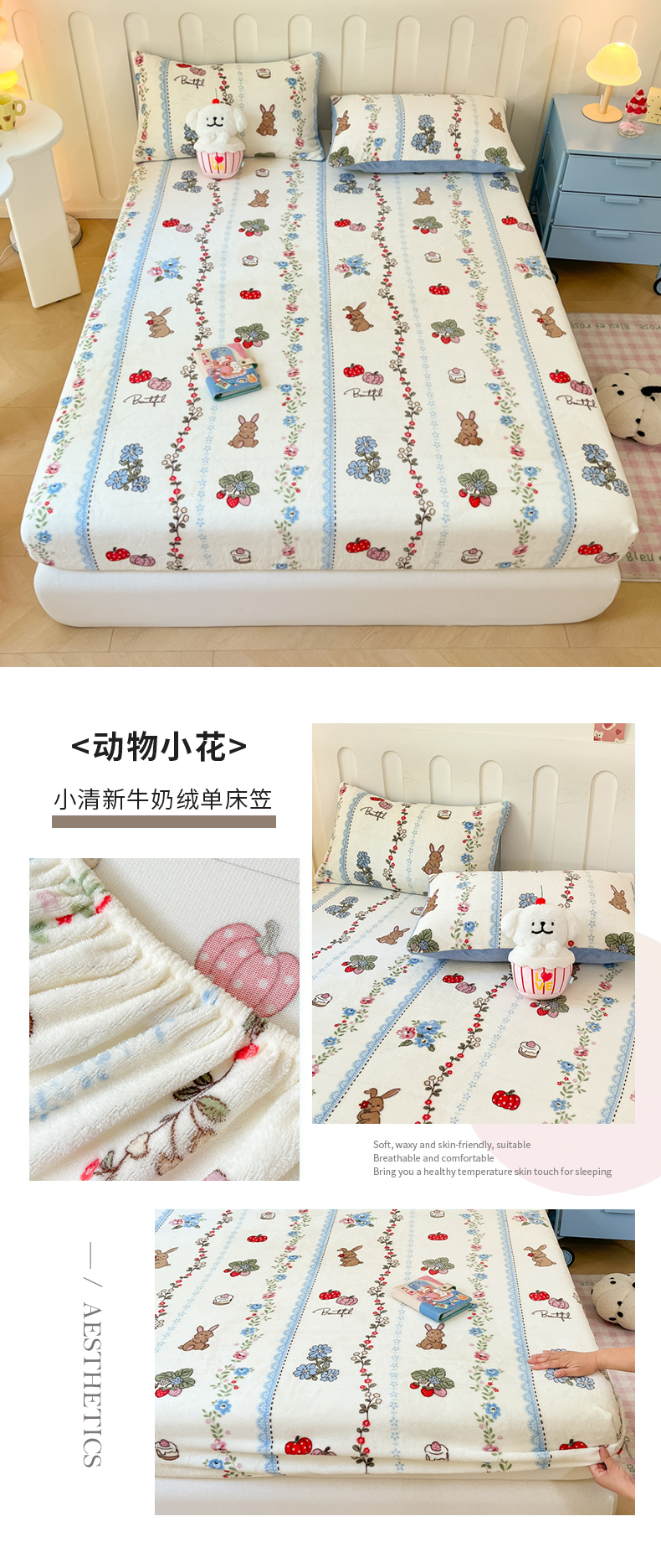 商品名称:星座家纺 2025新款小清新牛奶绒单床笠 动物小花