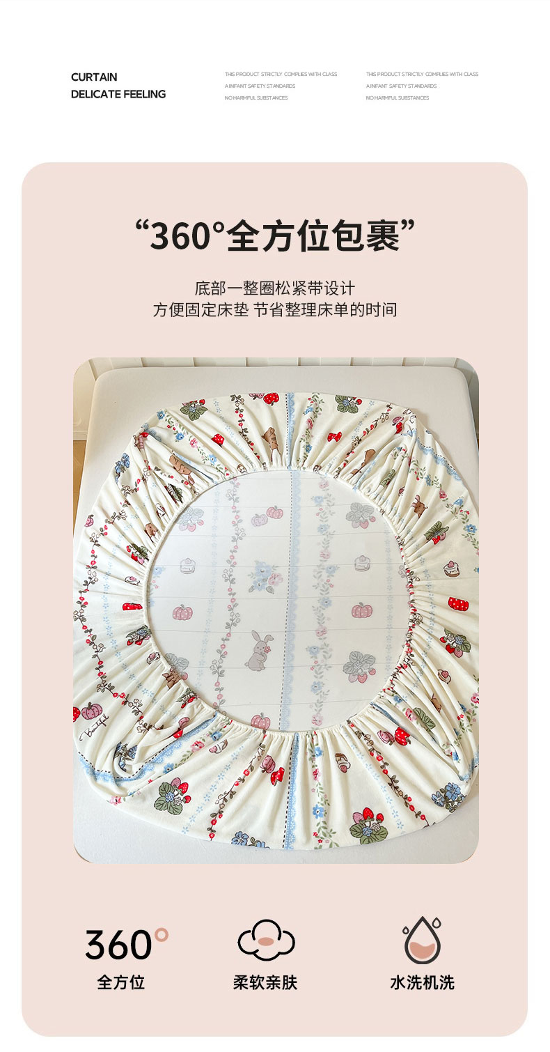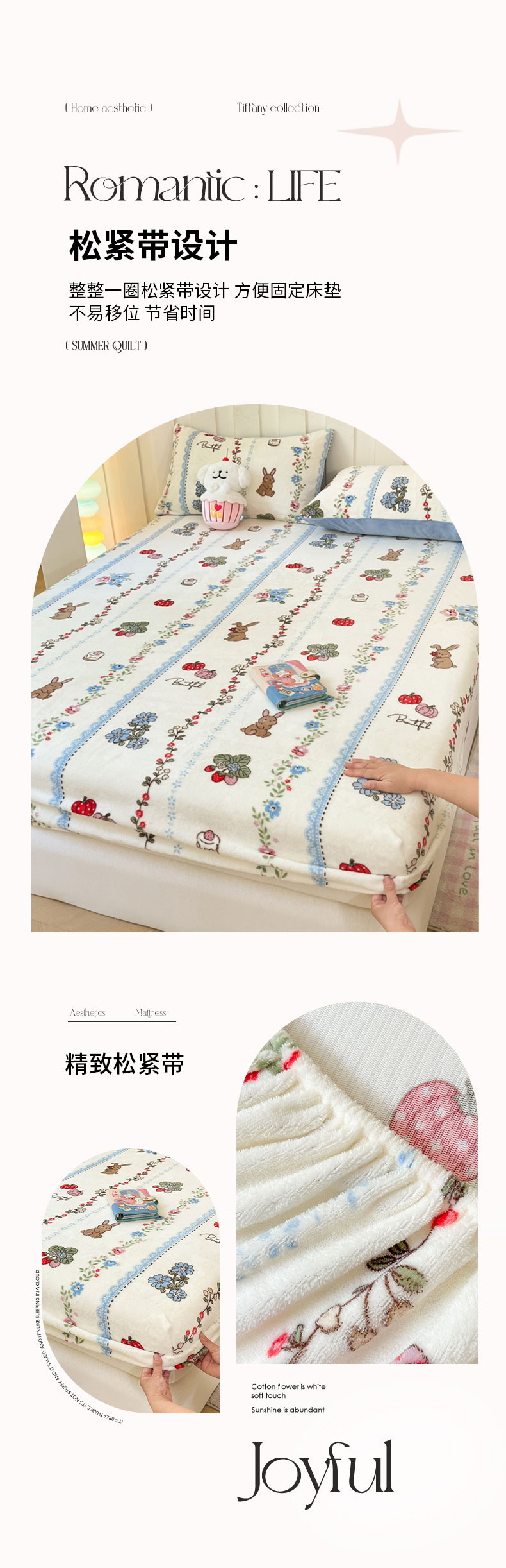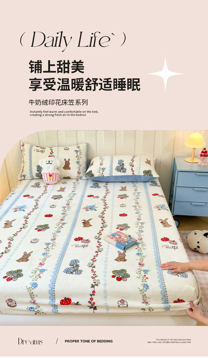 商品名称:星座家纺 2025新款小清新牛奶绒单床笠 动物小花