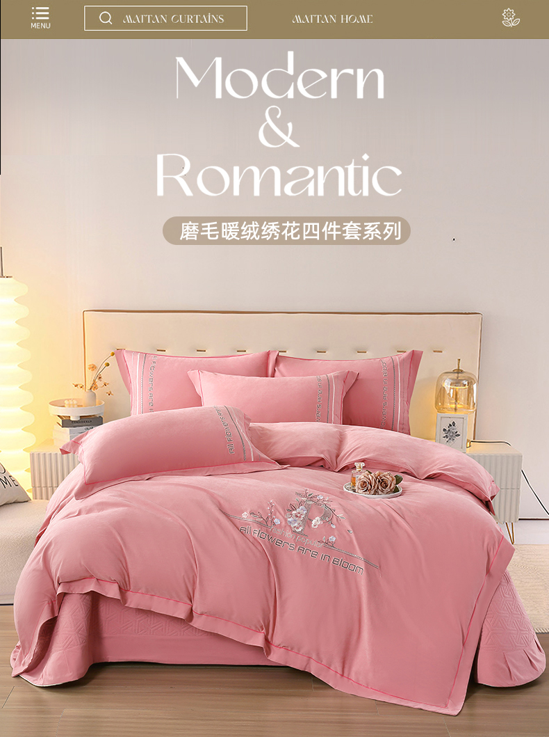 当前位置: 91家纺网 > 商品网购 > 床品套件 > 四件套 > 其它四件套 > OL家纺 2024新款磨毛暖绒床盖夹棉四件套刺绣轻奢风 西瓜粉
