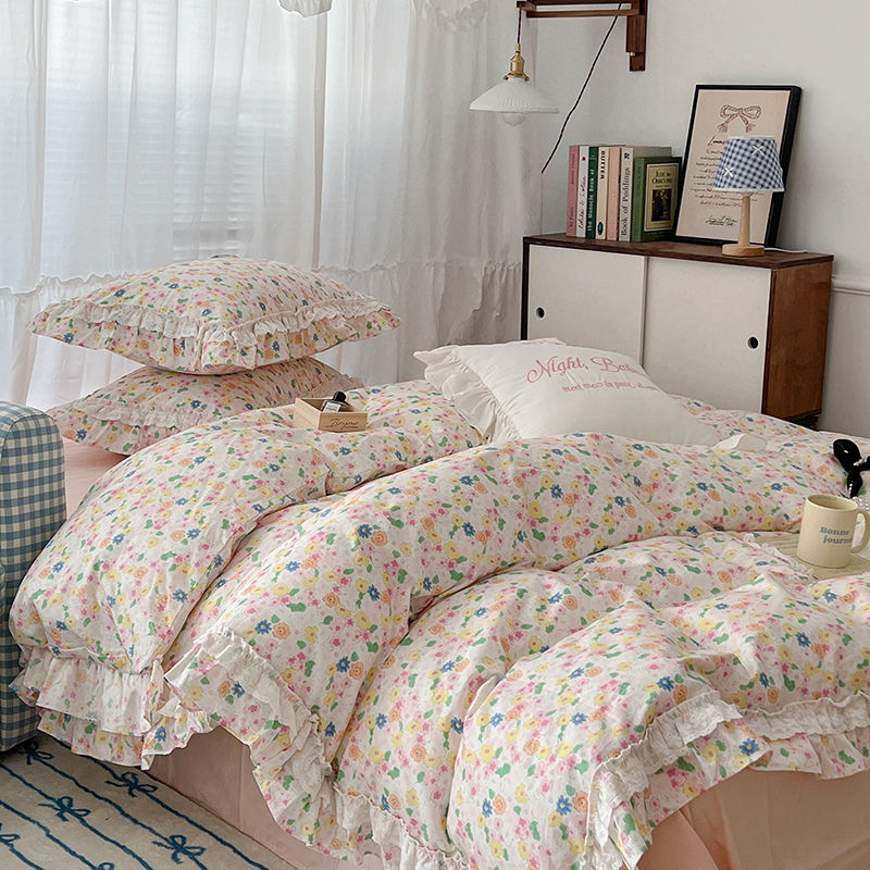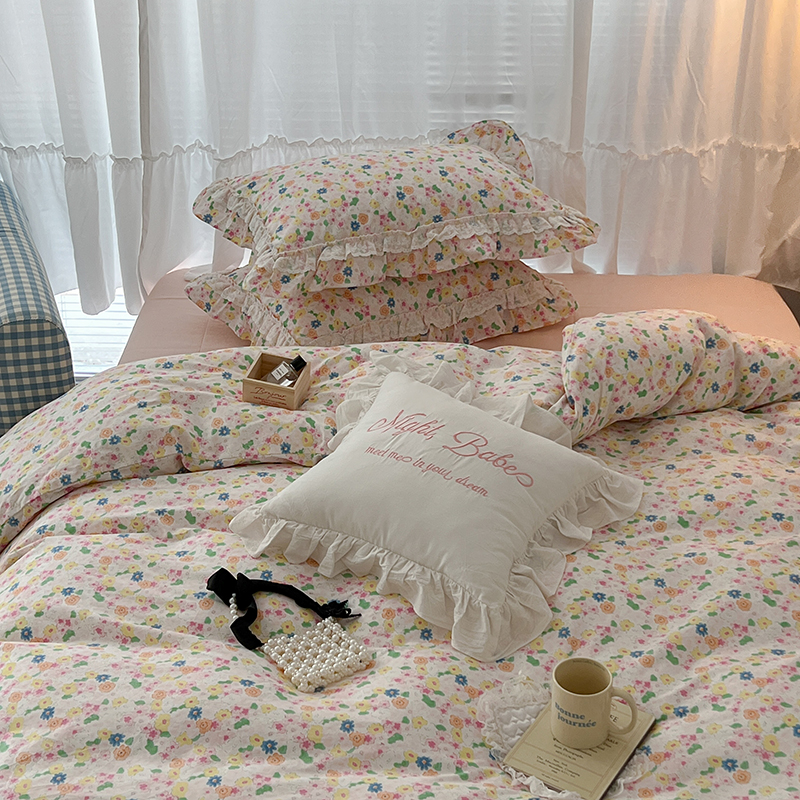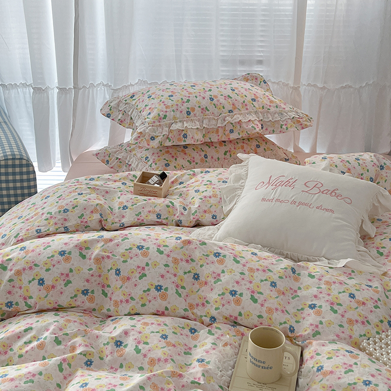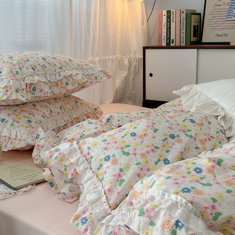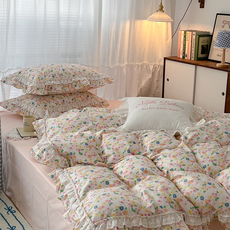 昔可家纺 2024蕾丝双层花边款全棉四件套 春山花漫