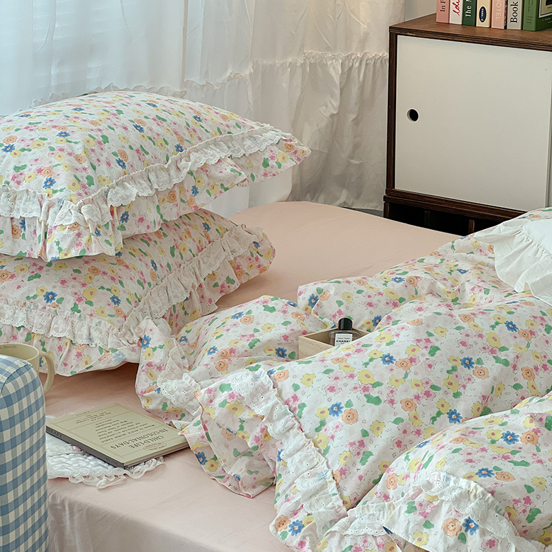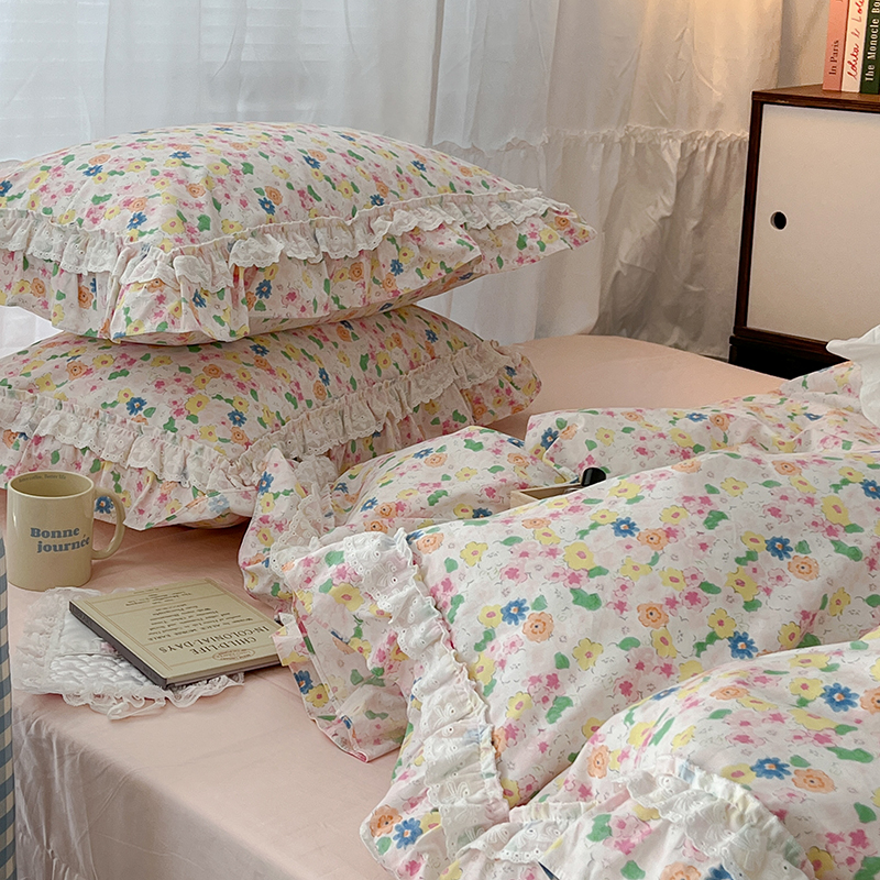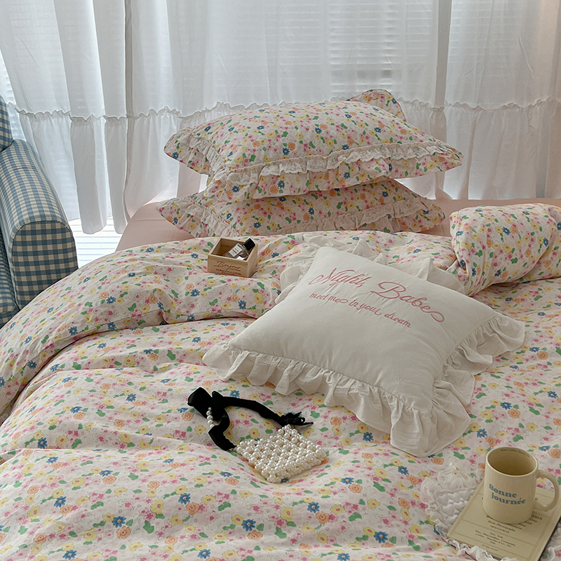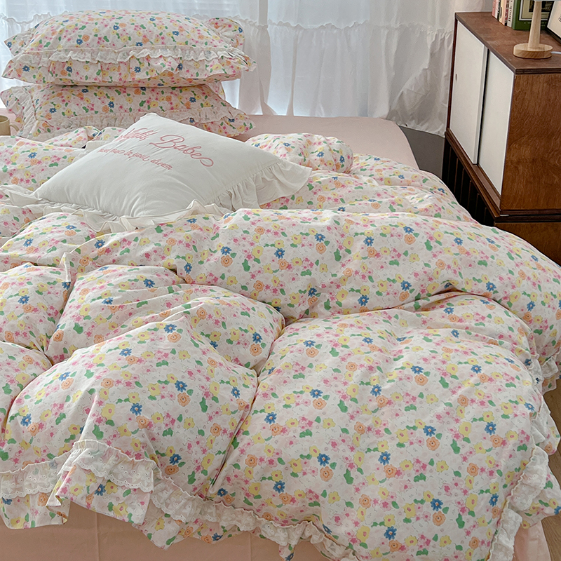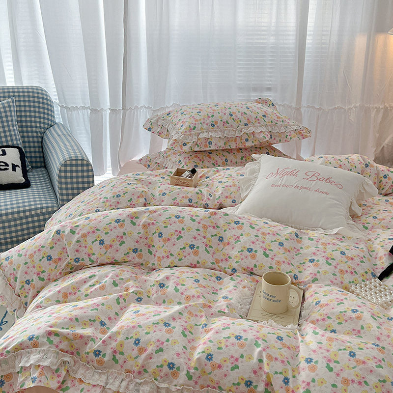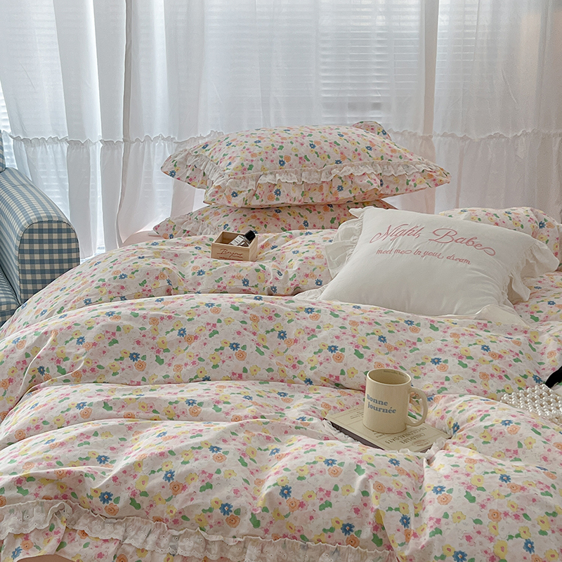 商品名称:昔可家纺 2024蕾丝双层花边款全棉四件套 春山花漫