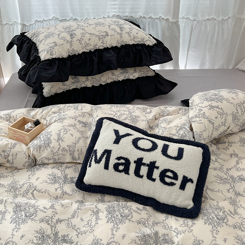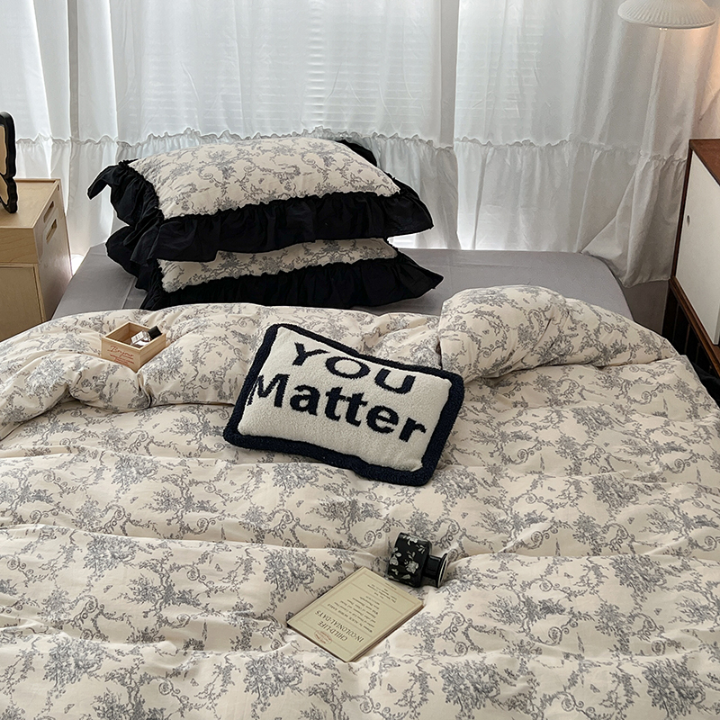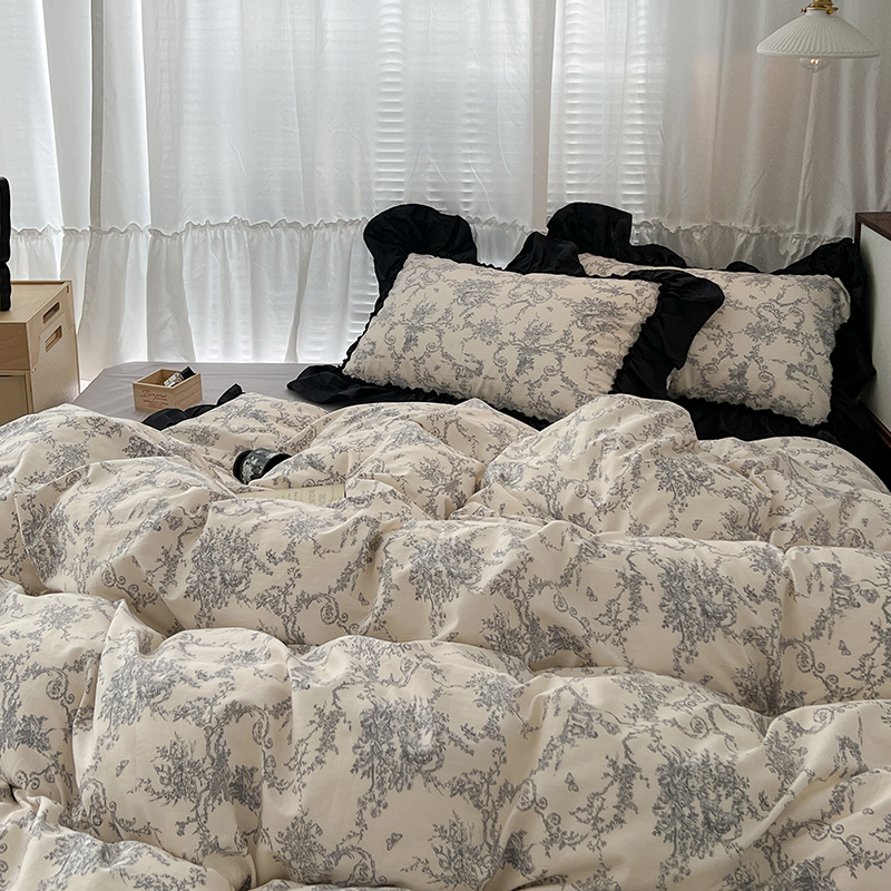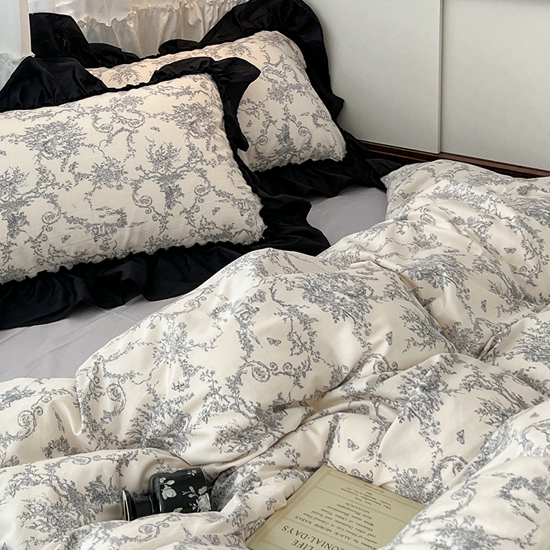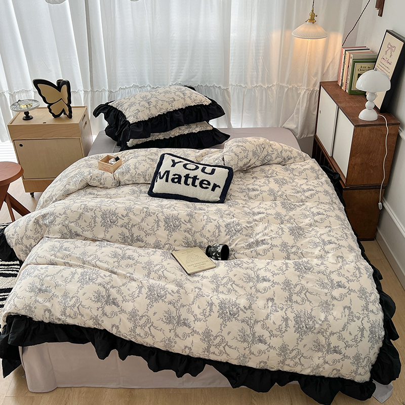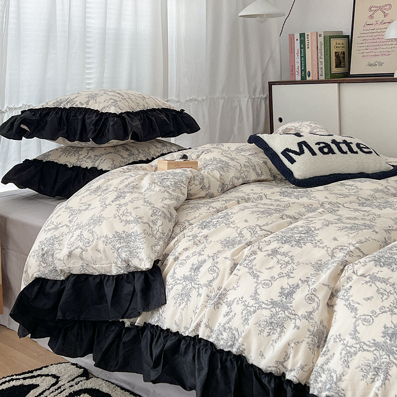 昔可家纺 2024黑色贴边花边全棉款四件套 香榭假日