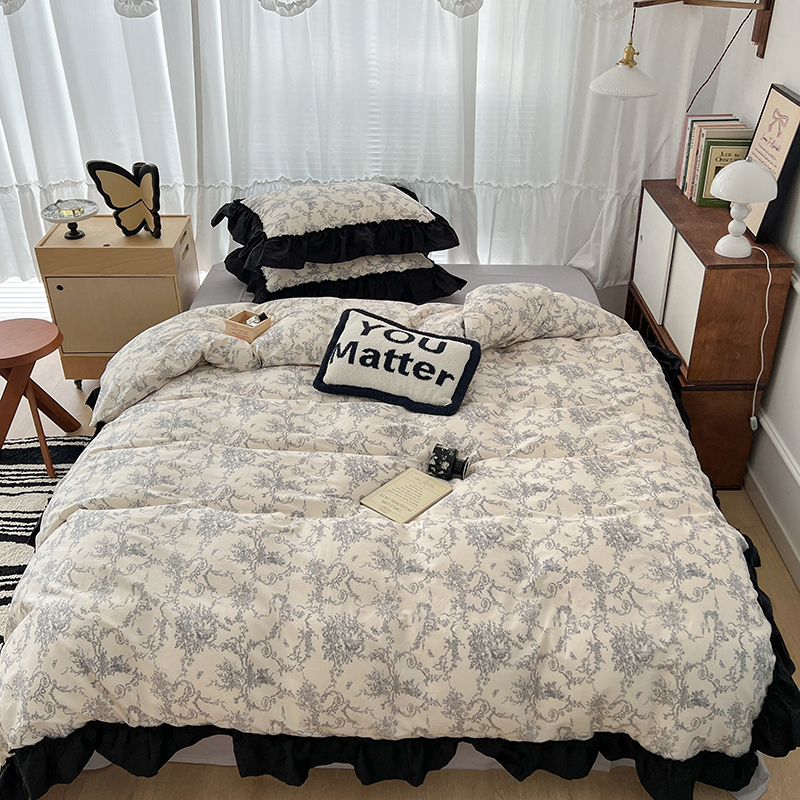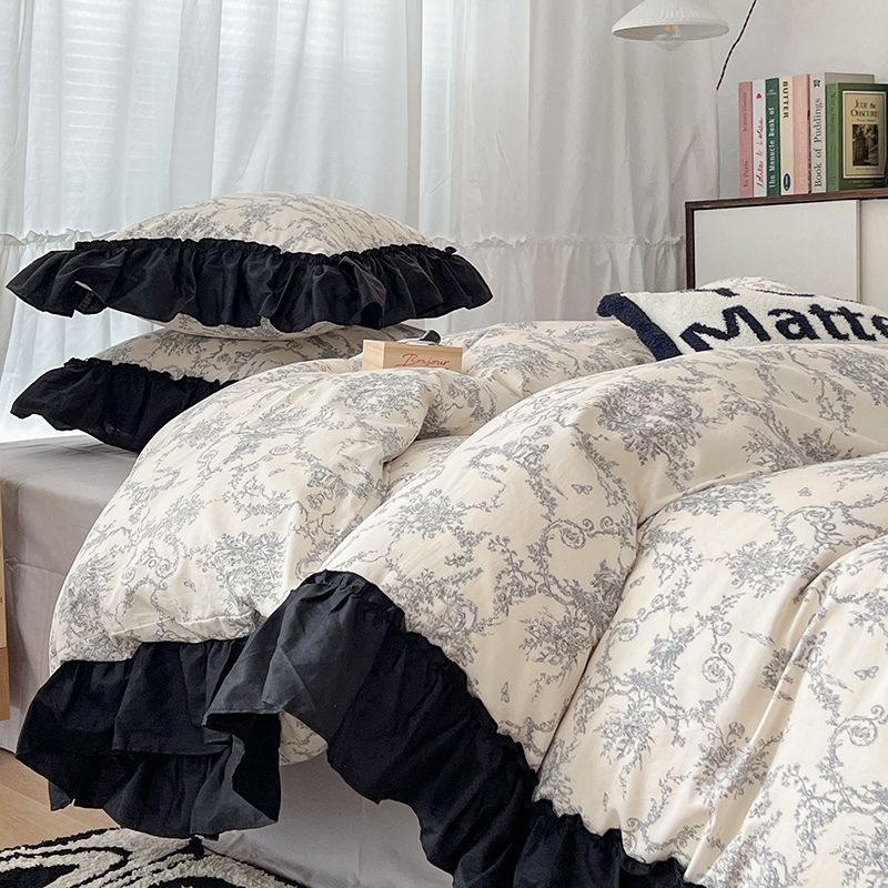 商品名称:昔可家纺 2024黑色贴边花边全棉款四件套 香榭假日