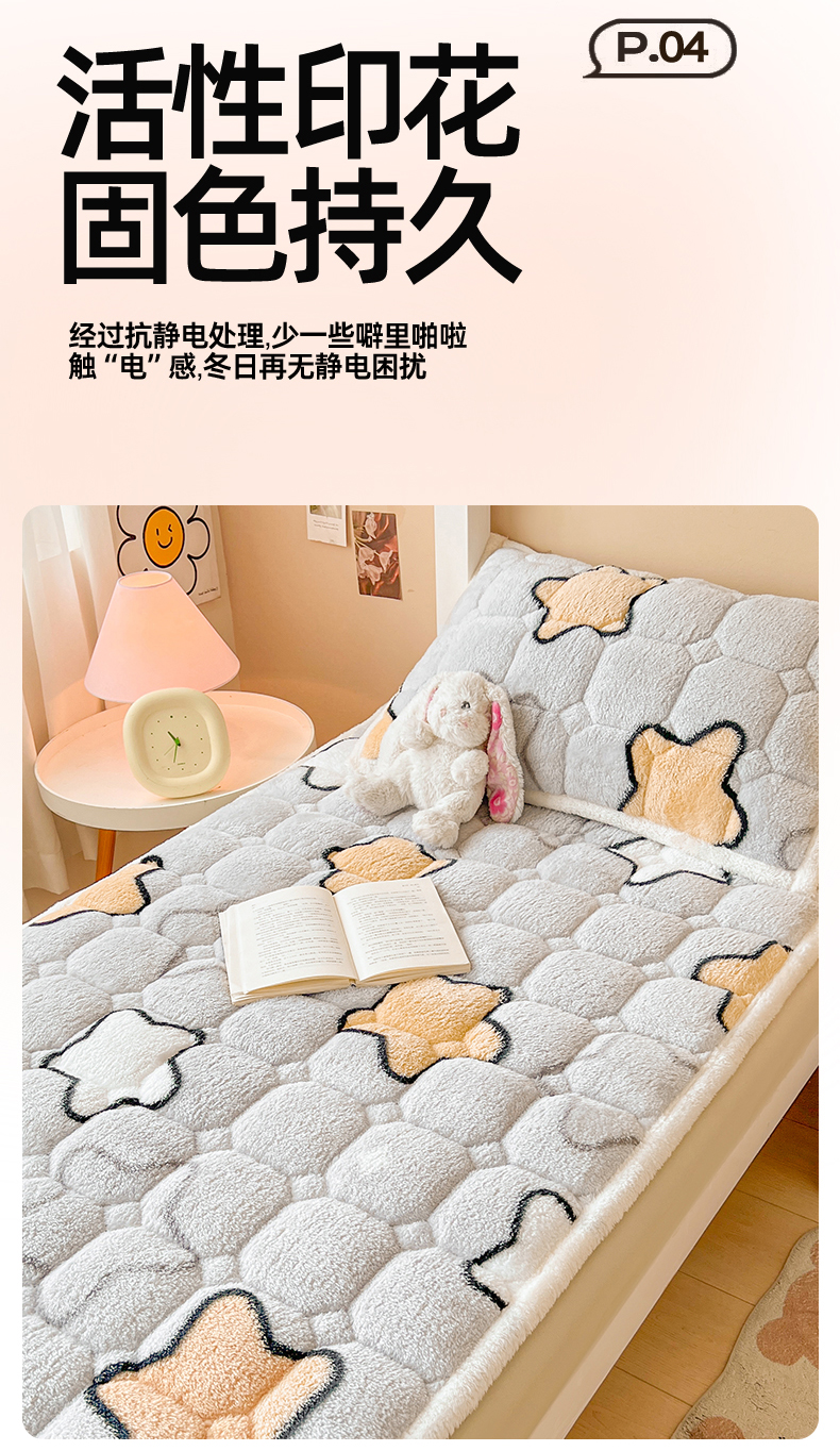 • 91家纺网 家纺一手货源 找家纺 雯豆家纺 2024新品泰迪绒学生床垫宿舍床褥子加厚上下铺北极绒床护垫 泰迪绒床褥-闪耀星辰