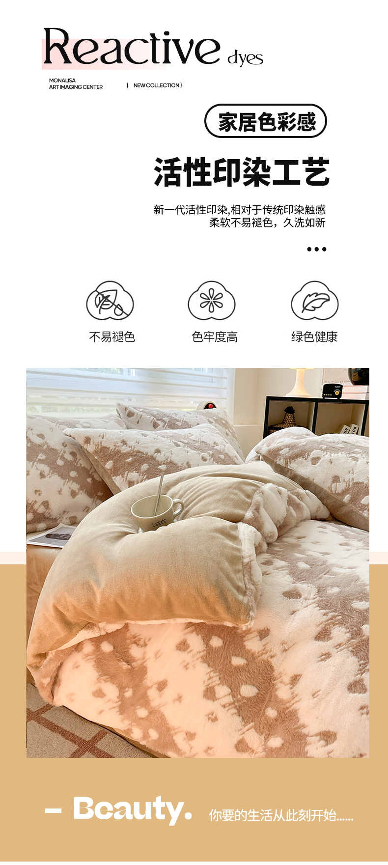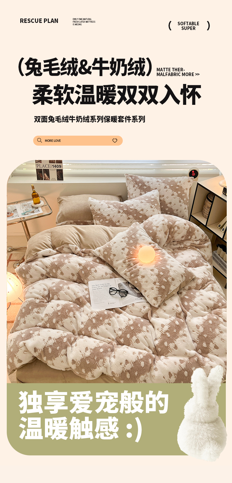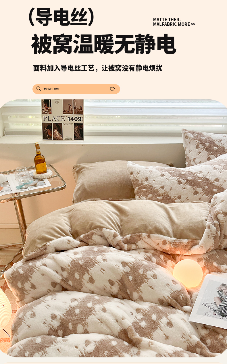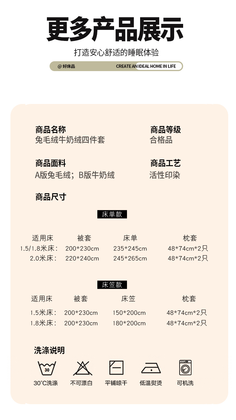 商品名称:金爱家 2024新款全消光牛奶绒A类纯色獭兔毛绒立体雕花牛奶绒四件套 兔毛意境咖