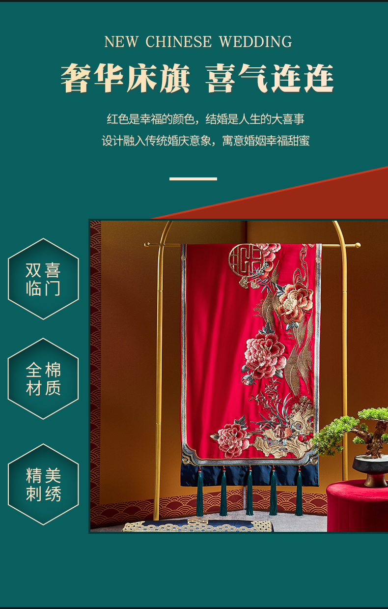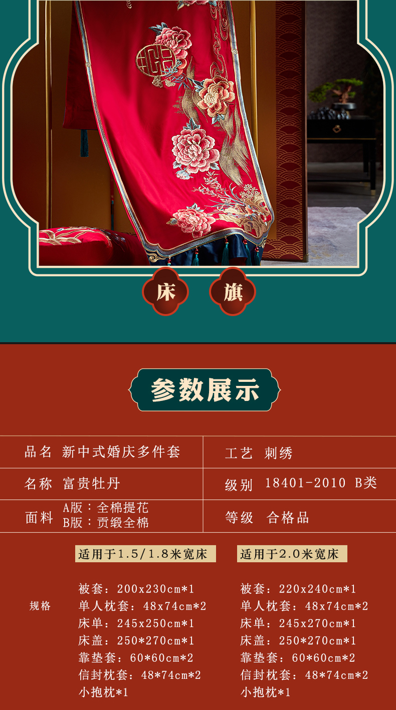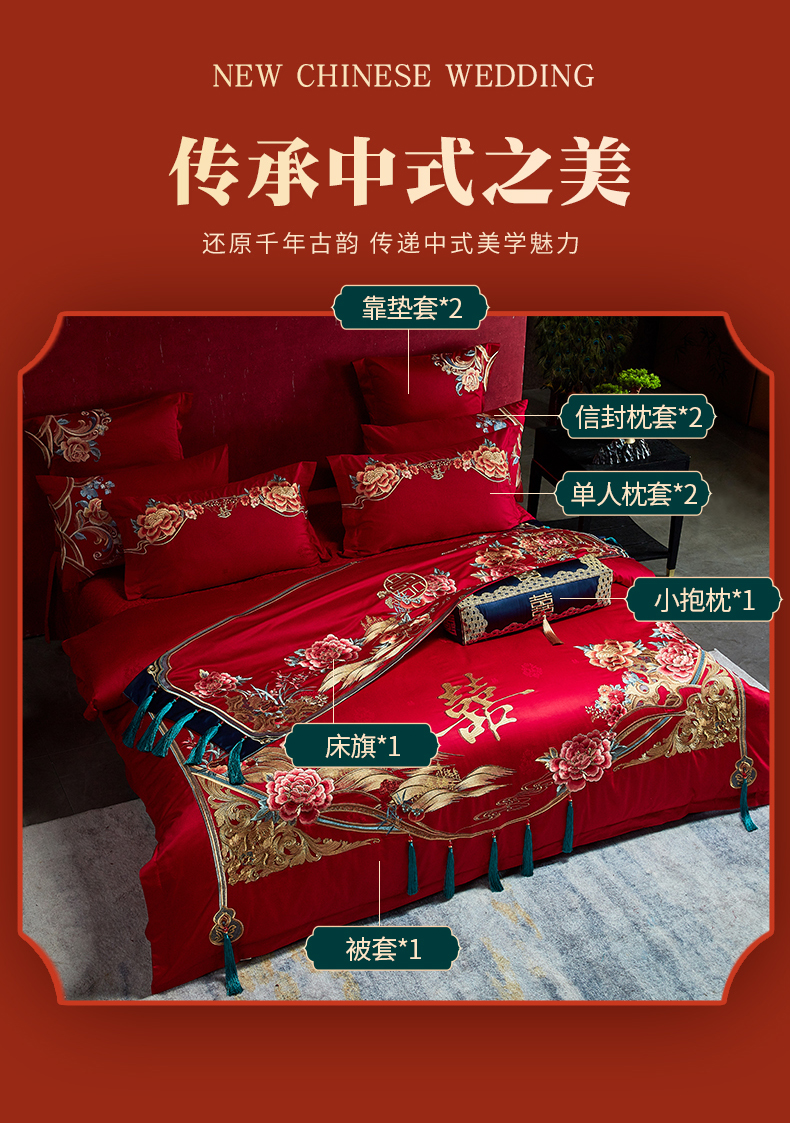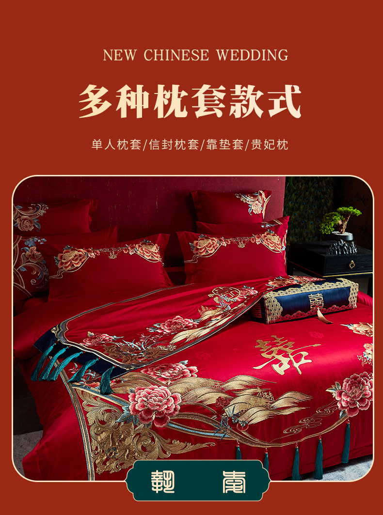 当前位置: 91家纺网 > 商品网购 > 床品套件 > 四件套 > 婚庆四件套 > 宏羽纺家纺 2024新款高支高密纯棉提花婚庆套件系列(控价680)富贵牡丹