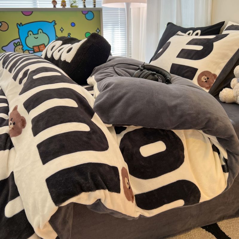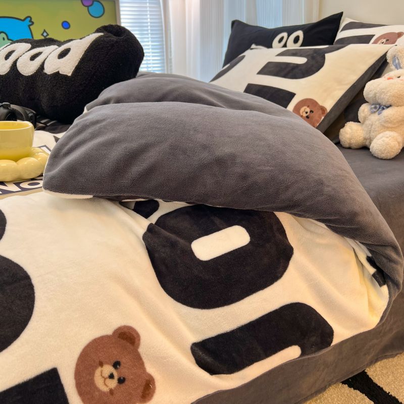 2024新款原创白色小清新场景牛奶绒单被套 巧克力豆