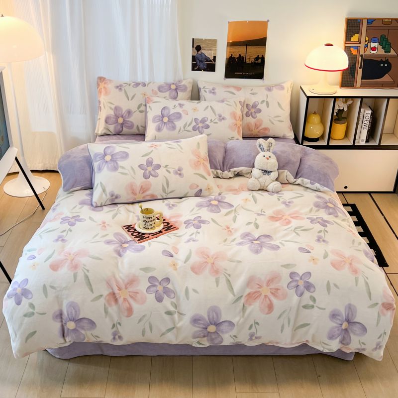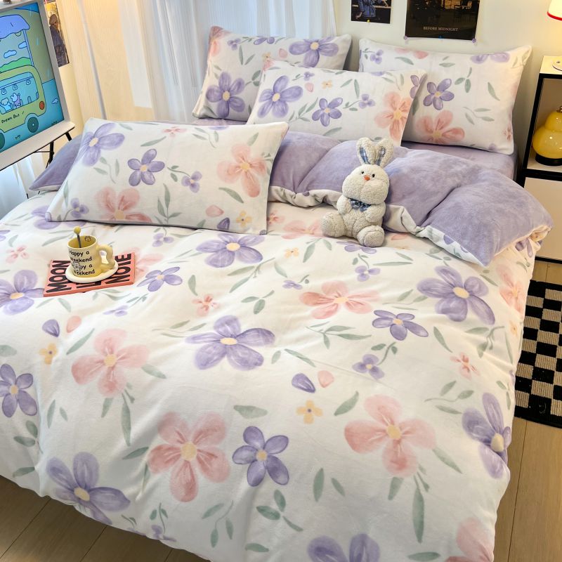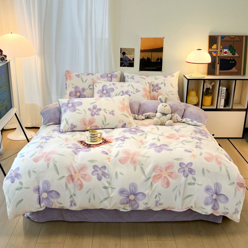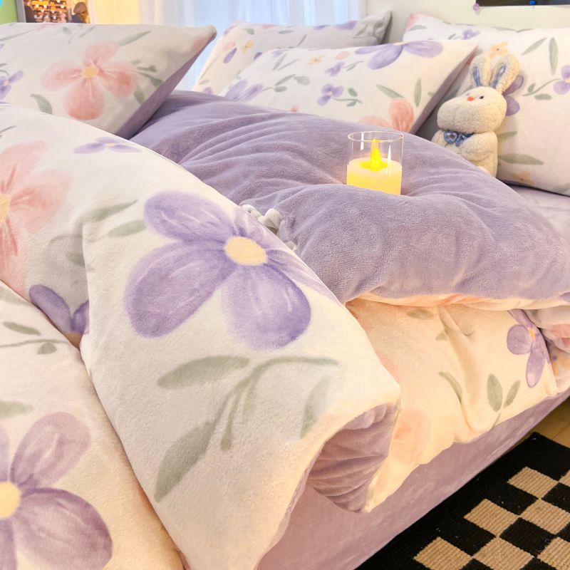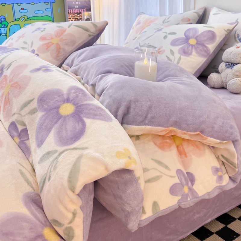 商品名称:2024新款原创白色小清新场景牛奶绒单被套 花满庭
