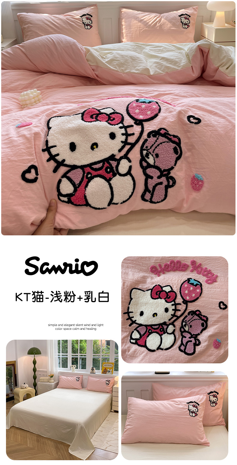(总)奈颜 2025新款三丽鸥爆款云感双层纱印花四件套学生宿舍三件套-含防伪吊牌-叠拍图,组合图仅供展示不可下单,KT派对,蛋糕KT猫-浅粉,蛋糕KT猫-乳白,格子KT-浅蓝,嗨皮KT,库洛米-浅紫,梦幻KT,条纹KT-浅粉