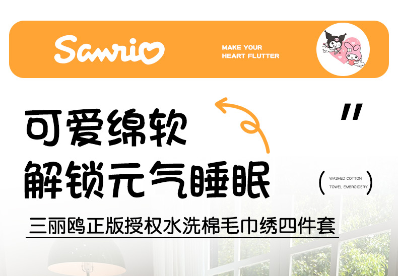商品名称:(总)奈颜 2024正版授权三丽鸥爆款超柔水洗棉纯色毛巾绣四件套学生三件套(含防伪吊牌)-摄影图