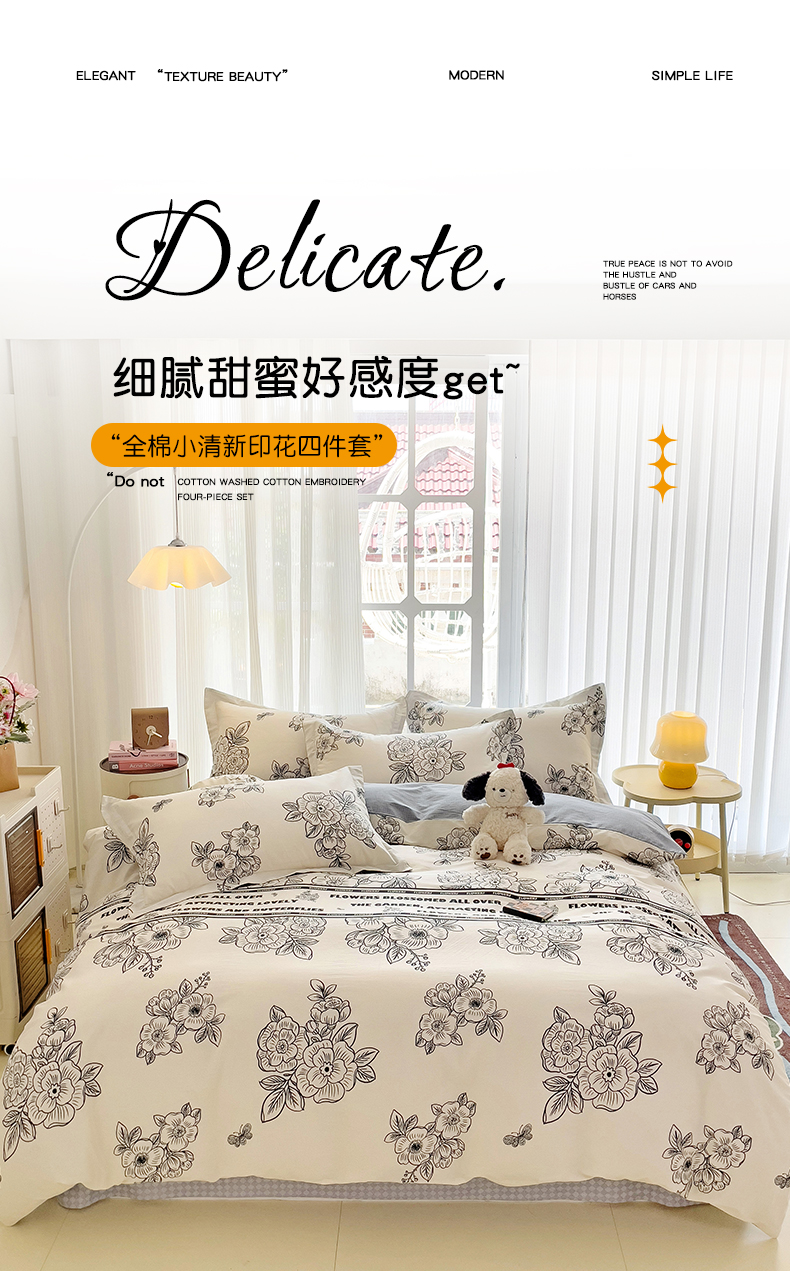 暖芯优选 2025新款小清新印花全棉磨毛四件套 芬迪,芬迪