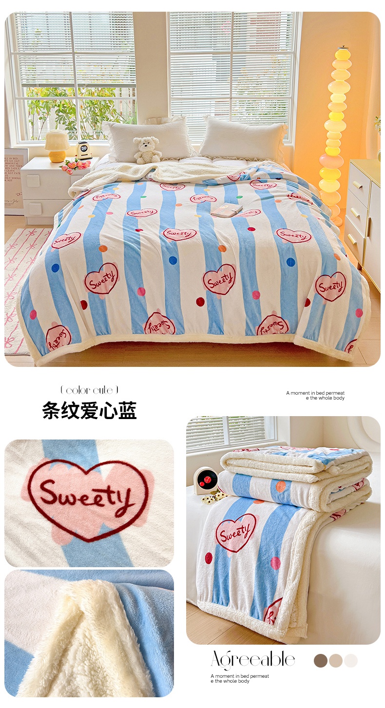 商品名称:鑫喜莱家纺 2024新款牛奶绒羊羔绒盖毯毛毯毯子午睡毯 条纹爱心蓝