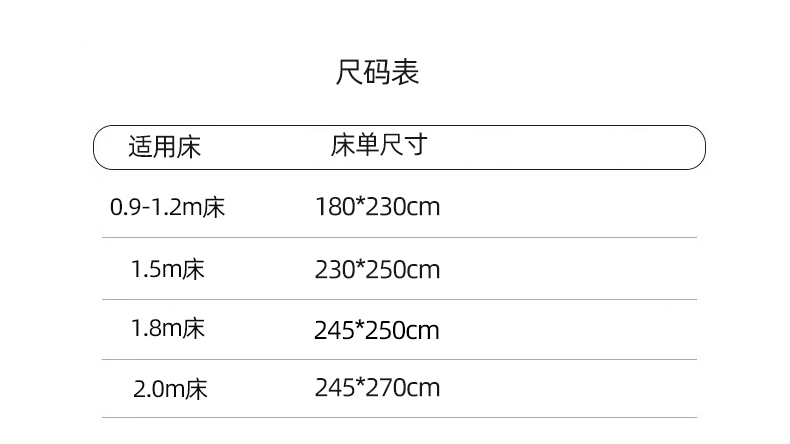 床单/床笠尺寸